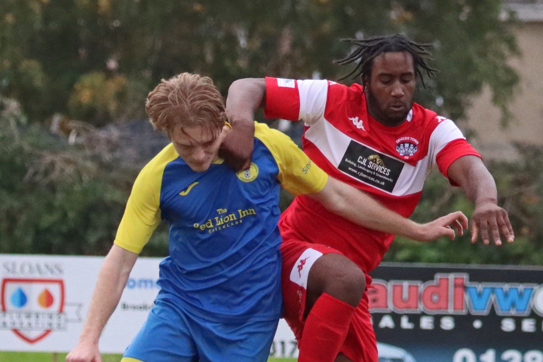 Devizes' Kassa Anderson and Gabe Costello who were both amongst the goals for Devizes Town