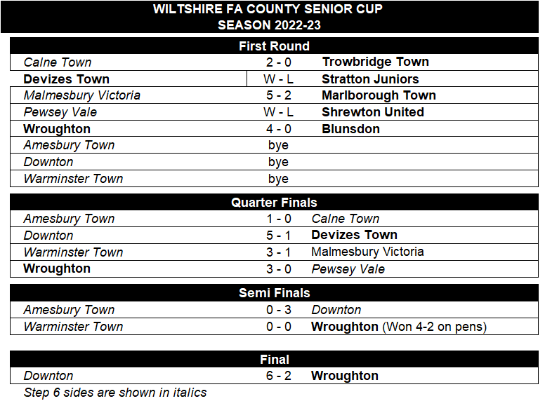 Congratulations to Cricklade Town on their title success to add to the League Cup they won the previous season. They lost just one game all season, that being an early season defeat to Chiseldon on grass in their second game of the season. After that they won all of their remaining 16 league games to finish nine points clear at the top. Well done also to Royal Wootton Bassett Town on securing runners-up and making the County Cup Final. Congratulations also to Redhouse for their part in an exciting title race and for also making that League Cup Final and going so close to lifting the cup, eventually losing narrowly in that enthralling penalty shootout.
