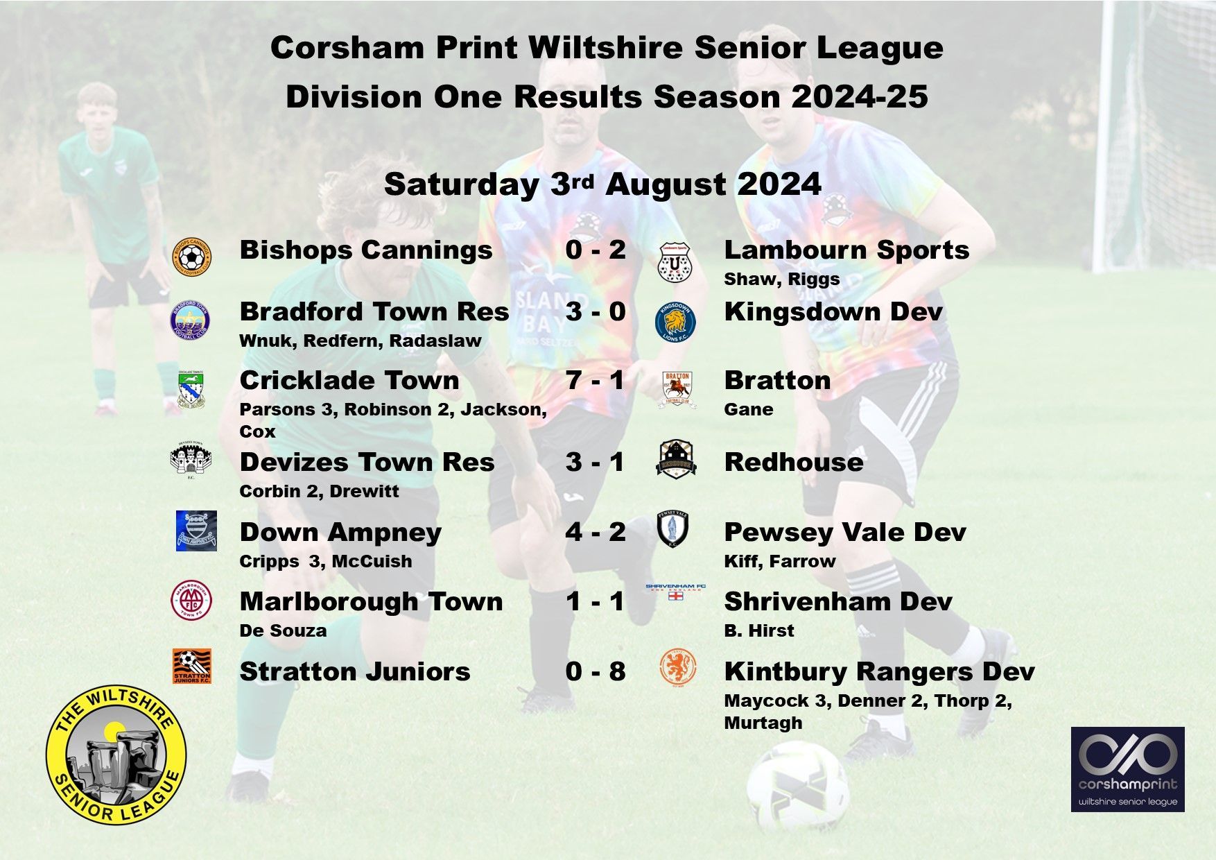 Two new sides to the Division, Bradford Town Reserves and Down Ampney both made winning starts to their campaign. Goals from Wiklor Wnuk, James Redfern and Jakiel Radaslaw saw Bradford Town Reserves defeat the young Kingsdown Development side 3-0.