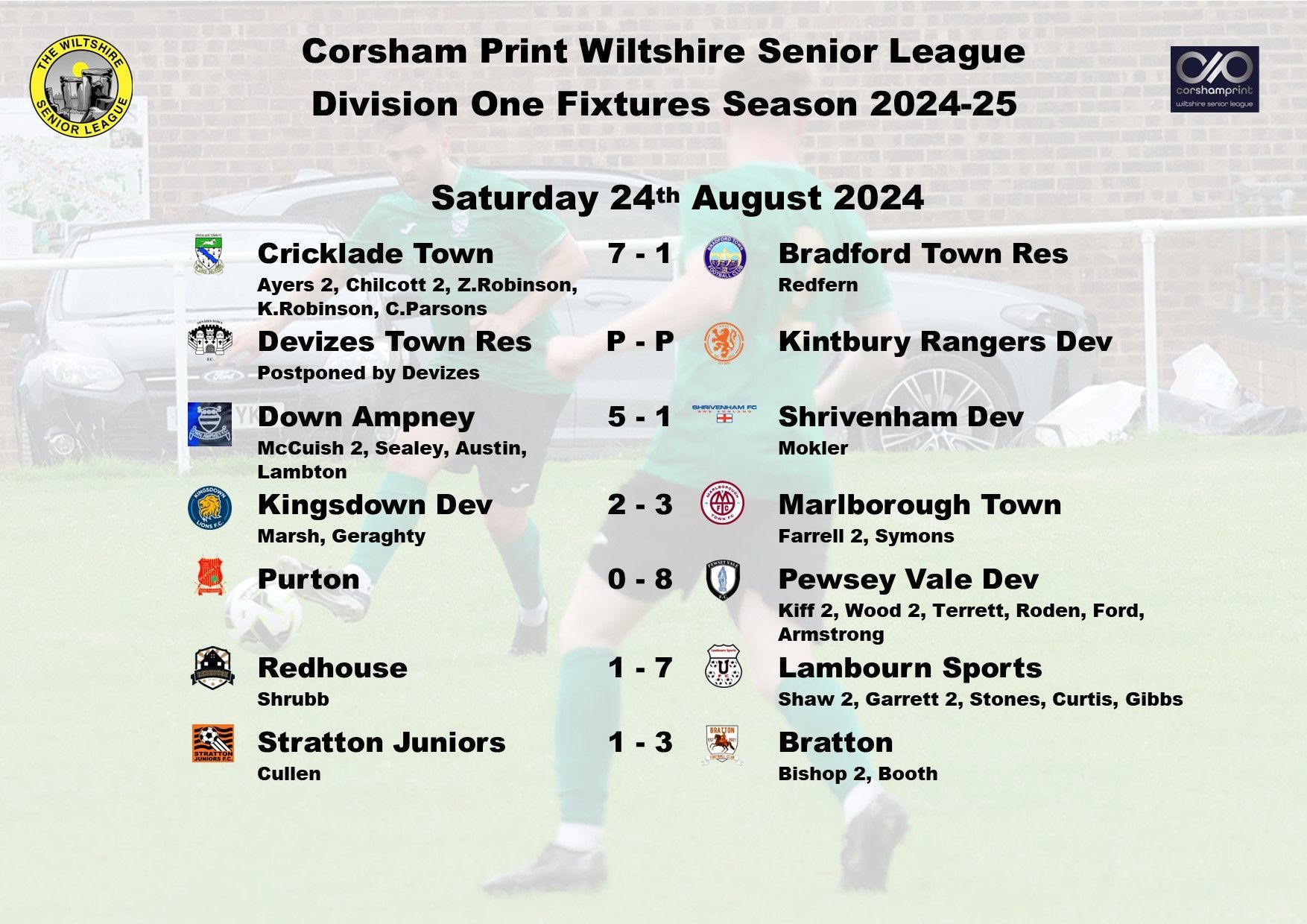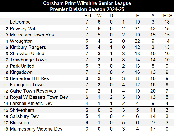 Purton were also involved in an eight-goal game on Saturday and will go into that midweek encounter having suffered another heavy defeat with Pewsey Vale Development having scored all eight of the goals in the match. Both Kierron Kiff and Liam Wood scored twice with further goals from Dominic Terrett, Jay Roden, Ollie Ford and Rhys Armstrong as Pewsey Vale Development picked up their first win of the season.