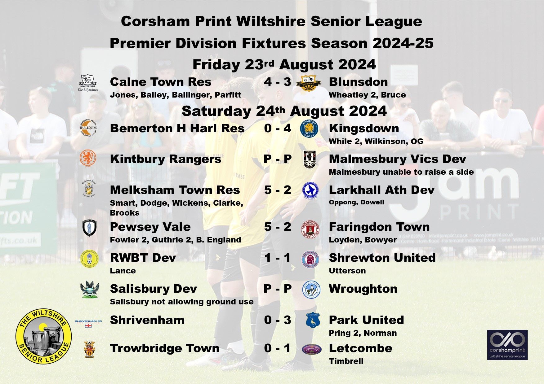 Action this weekend in the Premier Division of the Corsham Print Wiltshire Senior League got underway on Friday night under lights at Calne Town where