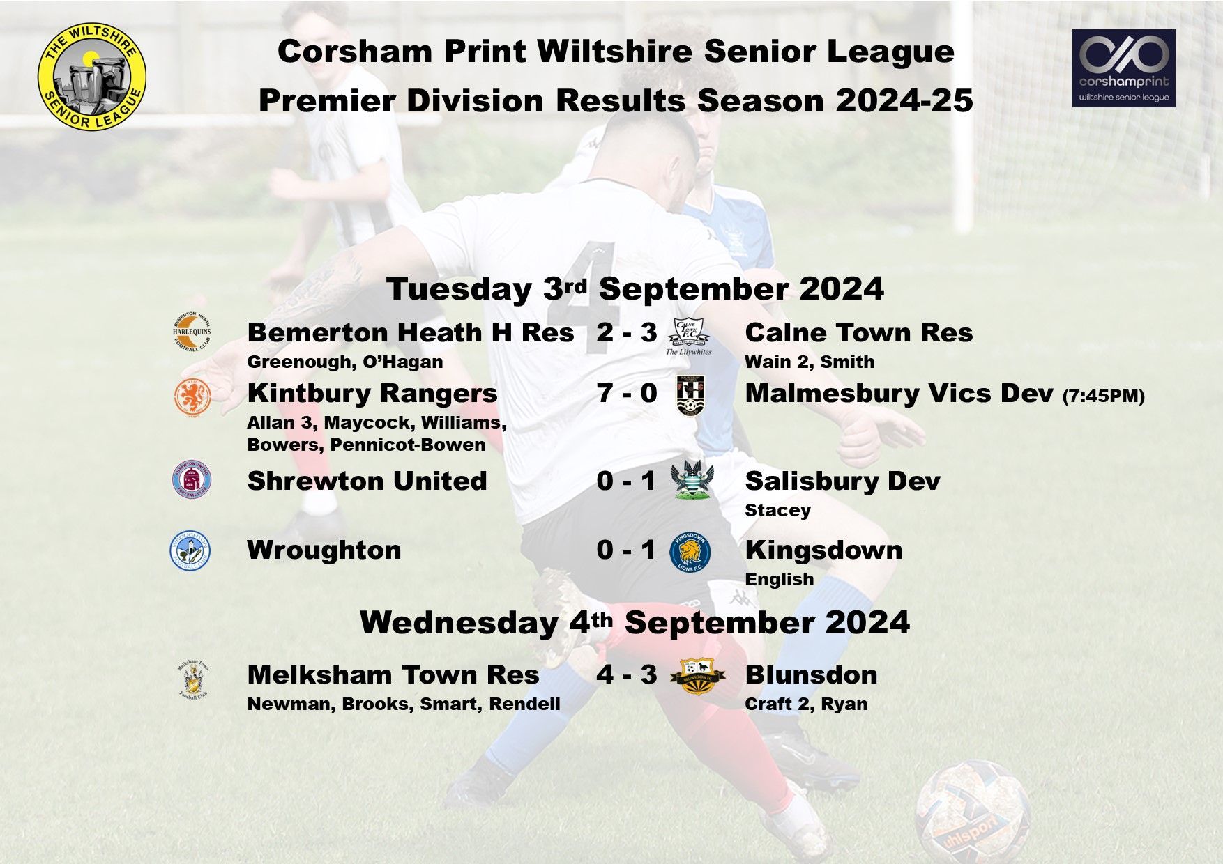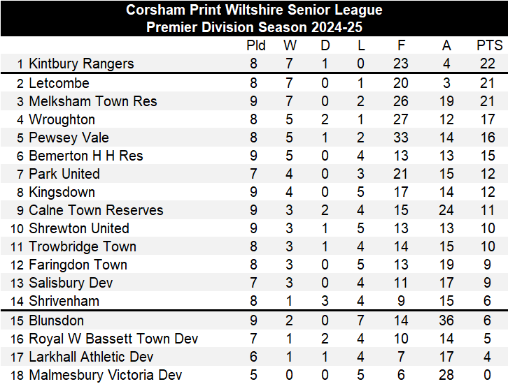 There was just the one game on Wednesday night with Melksham Town Reserves at home to Blunsdon. Melksham started the night four points behind leaders Kintbury and closed the gap to just a single point edging a seven goal thriller by the odd goal. Melksham led 4-1 with five minutes to go thanks to goals from Archie Newman, Kegan Smart, Liam Brooks and Leo Rendell, but two late Blunsdon goals caused a few nervous moments, including a late penalty shout for Blunsdon which on another day could easily have been given, but Melksham held on to claim all three points and move level on points with second placed Letcombe. On target for Blunsdon were Nick Craft with two, moving his total for the season to five, and Jacob Ryan.