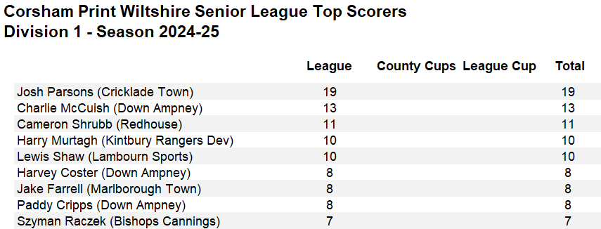 Elsewhere in the Premier Division there were five games which were all settled by one goal margins again demonstrating how competitive the league is this season. After going two games without a win, Pewsey Vale returned to winning ways with a 1-0 victory over third in the table Melksham Town Reserves, Rory England scoring the all-important goal on his return to the side after missing the last two games. Despite the defeat Melksham stay third but Pewsey moved to within two points of their beaten opponents with the win.