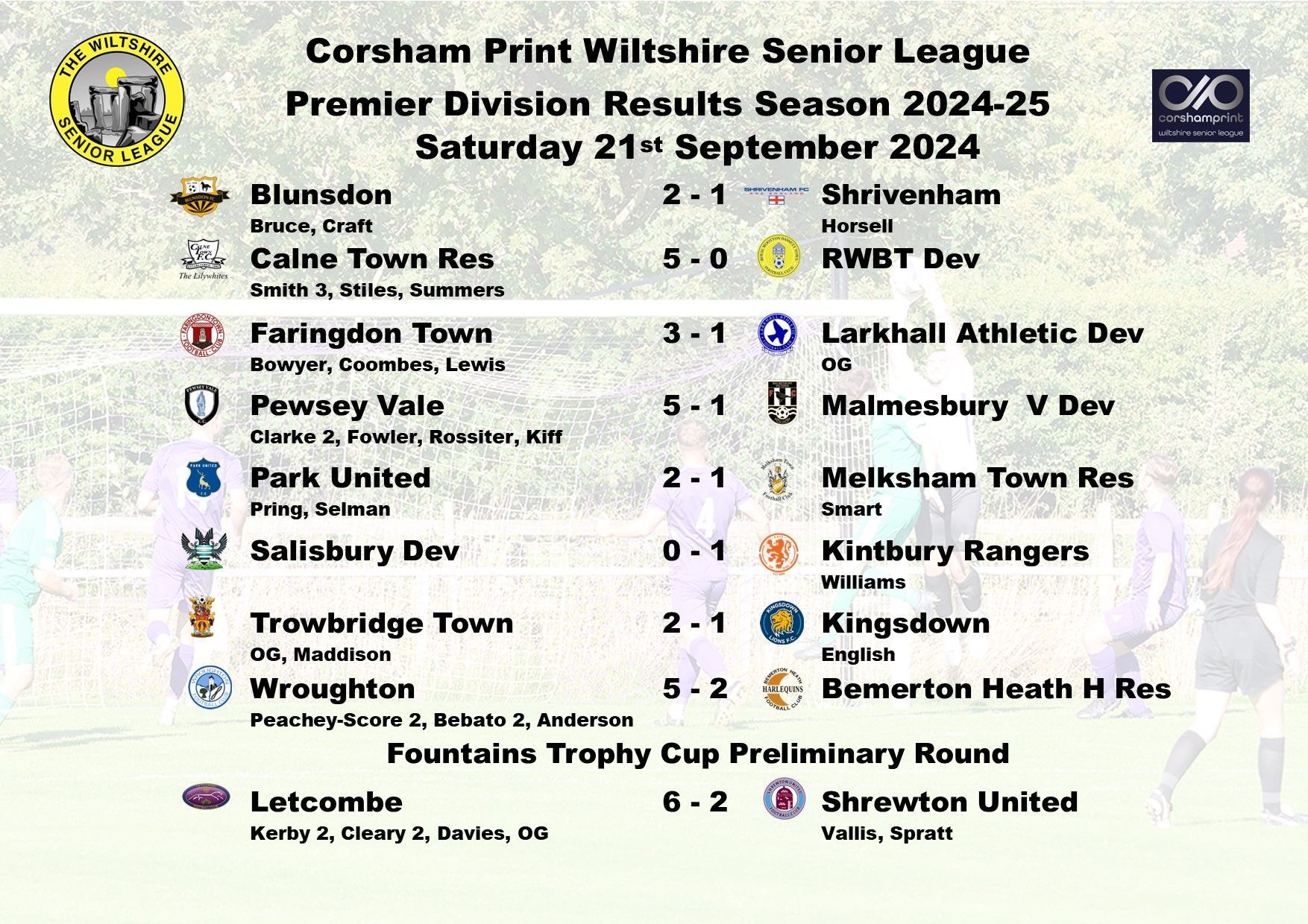 With Letcombe otherwise engaged in Fountain Trophies First Round action, and due to results elsewhere,