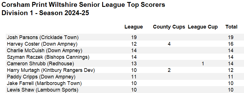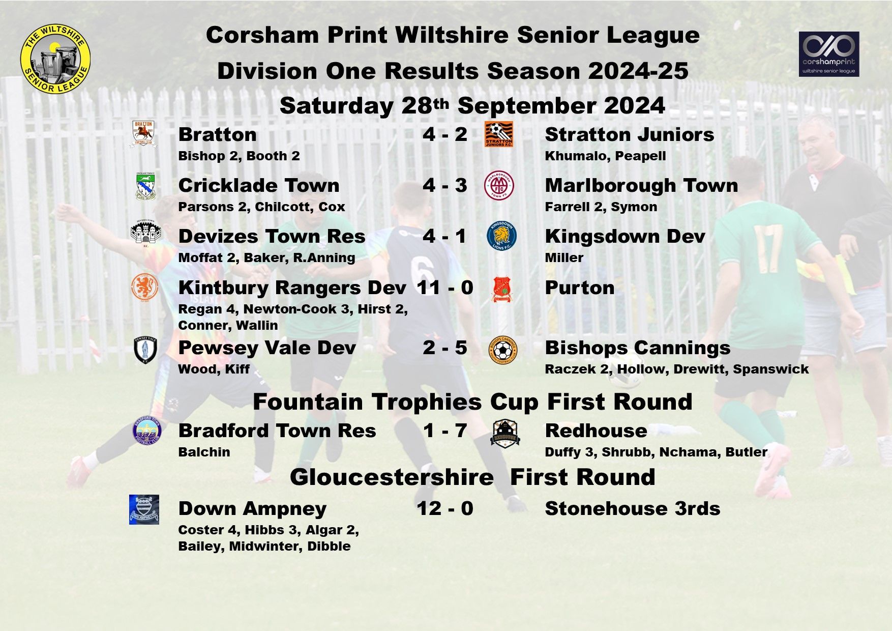 Next week the focus in both divisions is the Fountain Trophies Cup with 13 First Round ties and just the one league game on Saturday in the Premier Division between Shrewton United and Trowbridge Town. There is also one Premier Division game in midweek when Royal Wootton Bassett Town Development host Malmesbury Vics Development.