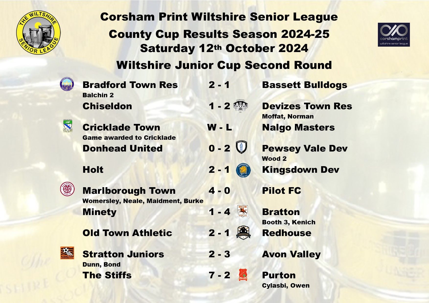 There are no other all Wiltshire Senior League ties. Bradford Town Reserves reward for defeating Bassett Bulldogs is an away game at Durrington Reserves from Division Five of the Dorset League.