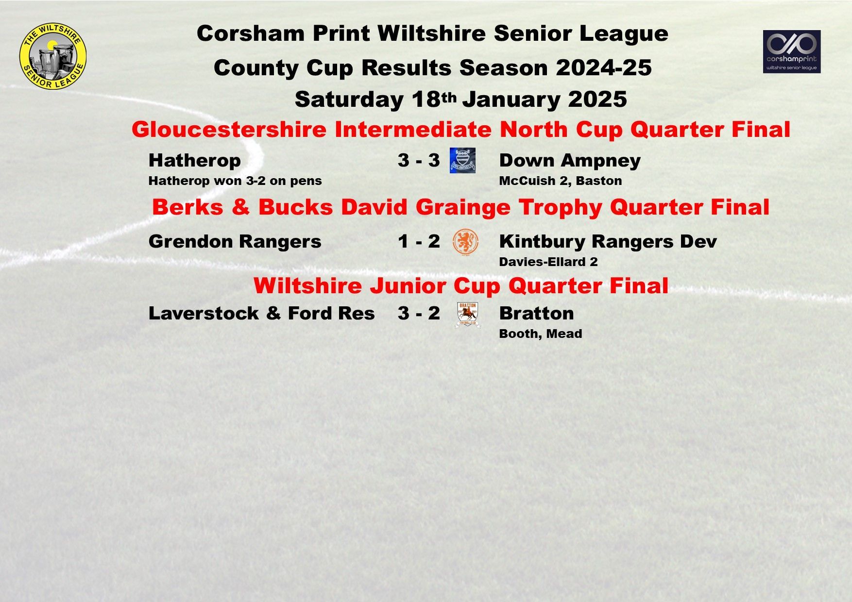 Down Ampney went mightily close to progressing to the semi-final of the Gloucestershire Intermediate North County Cup in their tie against Hatherop, the current league leaders of the Witney & District League Division One. At the end of 90 minutes, it was all square with each side having scored three times meaning penalties were needed to decide matters. Unfortunately for the side from the Corsham Print Wiltshire Senior League it would be Hatherop who came out on top, winning the shootout 3-2. The scorers for Down Ampney that took the game to penalties were Charlie McCuish with two, taking his total for the season to 23, and Lewis Baston.