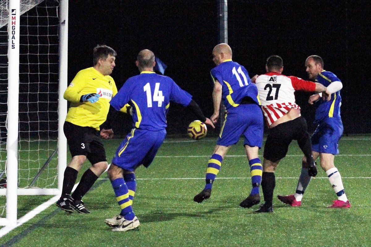 Action in the Veteran’s Divisions after Lockdown 2 restarted on Monday night with two games in the Mid Wiltshire Division. Unfortunately, the top of the table clash between Melksham Town and VFC Devizes well victim to the weather with the attempt to find an alternative venue to stage the game being unsuccessful.