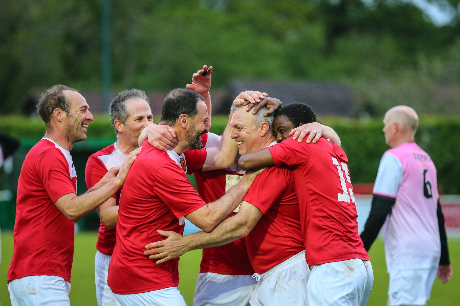 Corsham Town Vets celebrate a goal against Trowbridge Tigers