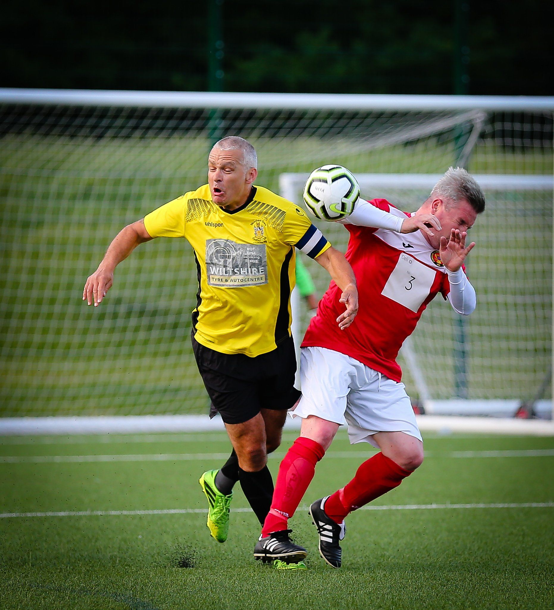 Action from Melksham Town v Corsham Town in the Mid Wiltshire Vets Division (Picture courtesy of John Cuthbertson)