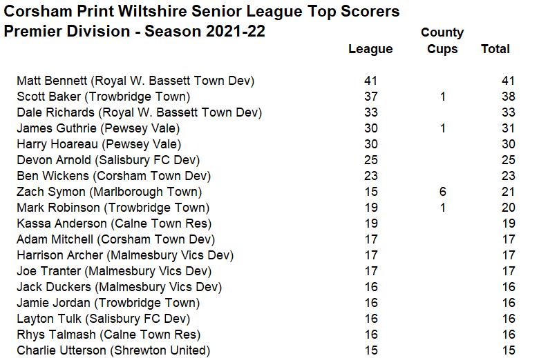 with leading scorer Devon Arnold back in their squad. They had certainly missed Arnold’s goals following his call up Steve Claridge’s Southern League side and he was to have a pivotal role in the outcome of this match. Trailing to a Calne Town Reserves goal scored by Samuel Taliss, Arnold put his side back on level terms a minute before the break after a shot from the edge of the box was saved by the Calne keeper but the ball fell to Arnold who was following up and he made no mistake to level matters up. Having scored a minute before the break, Salisbury got a second a minute after the restart, Arnold mishitting a shot from outside the box along the ground which found its way into the bottom corner of the net for 2-1. That was to be the end of the night’s scoring as Salisbury secured back-to-back wins after also defeating Wroughton on Saturday. The win saw them climb two places in the table to tenth place. Calne, who fielded three players from their Under 18 side on Tuesday night as they look ahead to next season, remained in fifth spot, with just that one game to play which is away to Malmesbury Victoria Development. They now have Shrewton United, Melksham Town Reserves and Frome Collegians all breathing down their necks for that fifth place finish in the table.