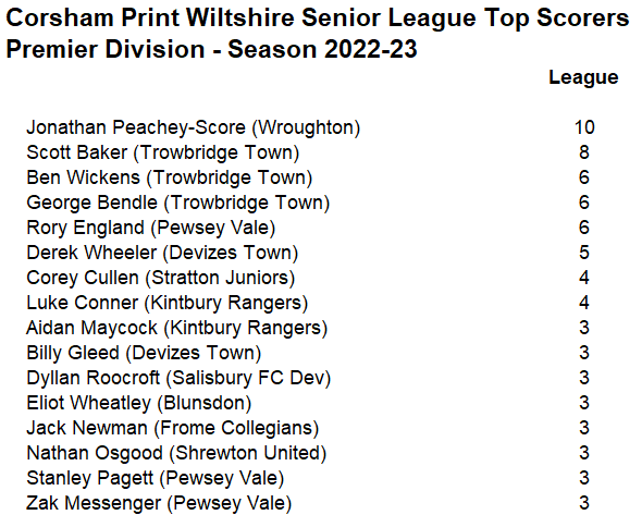 Jono Peachey-Score who took his tally for the season into double figures with two for Wroughton in their 4-0 win over Malmesbury
