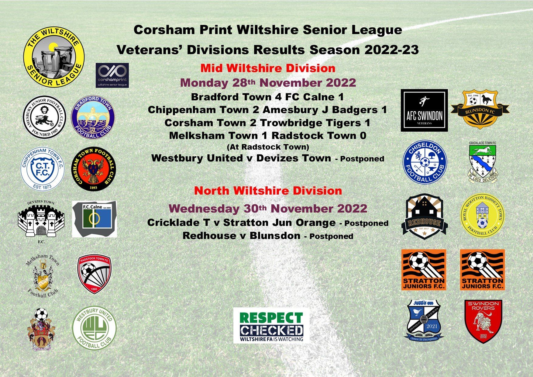 met up and, whilst relative league positions would have predicted a comfortable win for Melksham, in the end it was a solitary goal from Steve Pegler that settled things in their favour. The victory meant that Melksham reached the half-way stage in their fixtures unbeaten but have dropped more points than both Bradford Town and Devizes Town who have both played less games than the leaders. Next up for Melksham Town is a Wiltshire Veterans’ County Cup quarter final tie against Cricklade Town from the North Wiltshire Division this coming Monday, whilst Radstock Town play Westbury United in a league fixture.