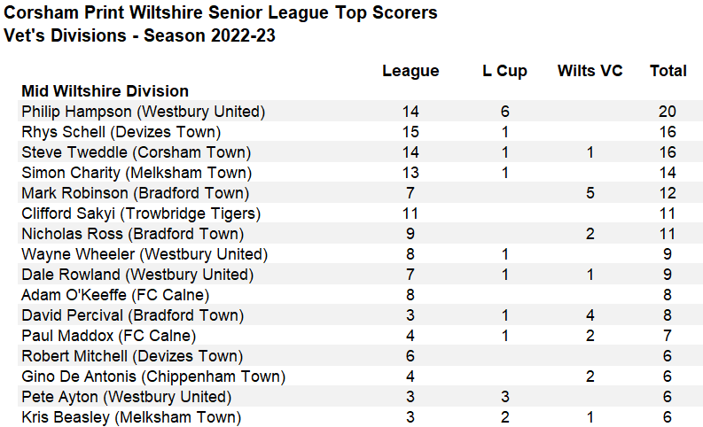 This week saw the first two quarter final ties played in the Veterans’ League Cup and it was a good week for the teams from the Mid Wiltshire Division. All four quarter final ties see Mid Wiltshire Division teams up against opponents from the North and at the half-way stage it is currently 2-0 to the Mid Wiltshire Division.