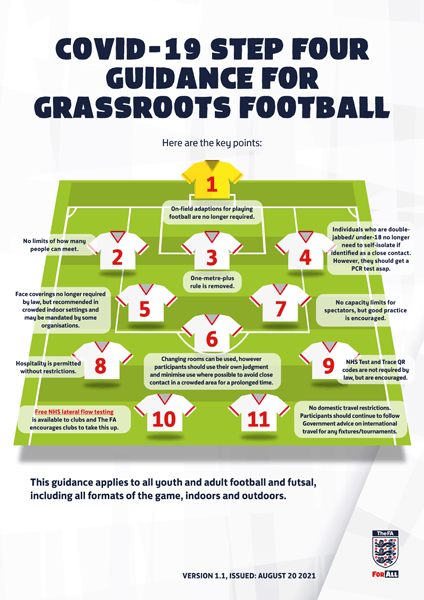 - Free NHS lateral flow testing is available to clubs and The FA encourage clubs to take this up.
