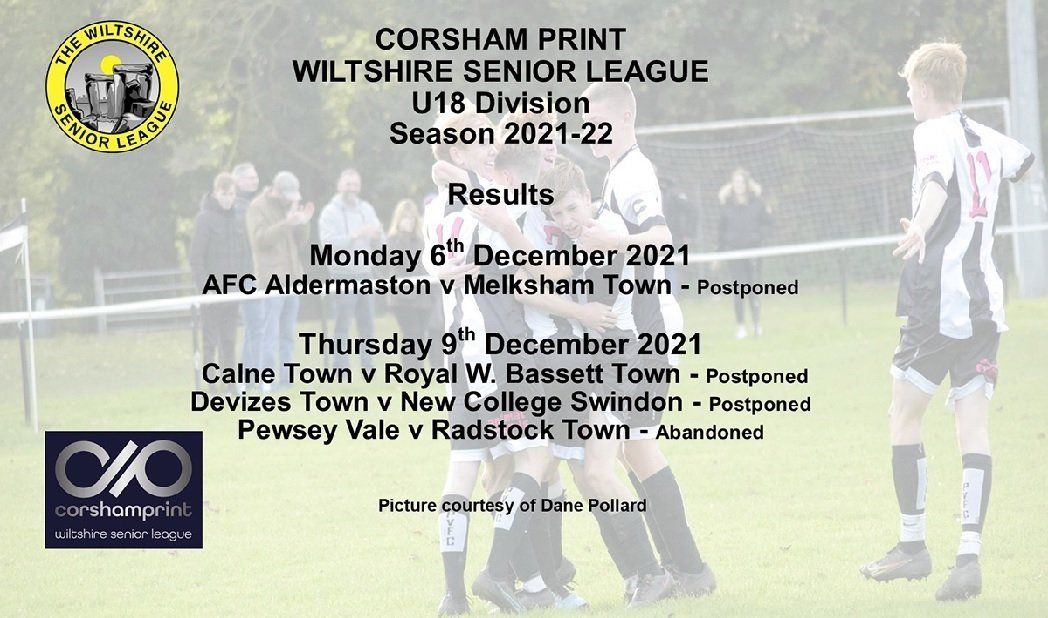 Unfortunately in the end all of the scheduled league fixtures in the U18 Division this week will need to be re-scheduled. The one game at Pewsey between Pewsey Vale and Radstock Town that did start unfortunately had to be abandoned due to heavy rain just before half time on an already wet pitch.