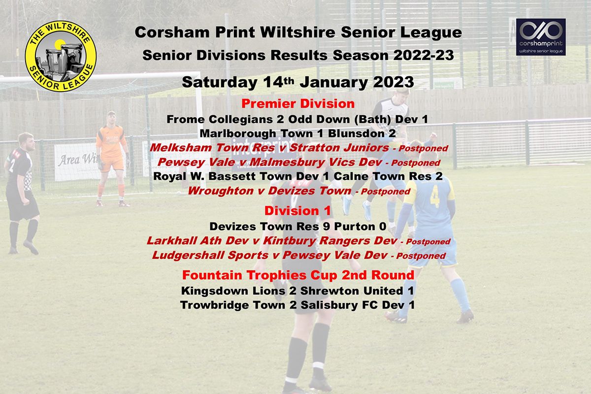 On another wet and windy afternoon, the Corsham Print Wiltshire Senior League fared better than a number of other leagues in the West Country with six of the scheduled 11 games going ahead, including helpfully both games in the Fountain Trophies Cup.