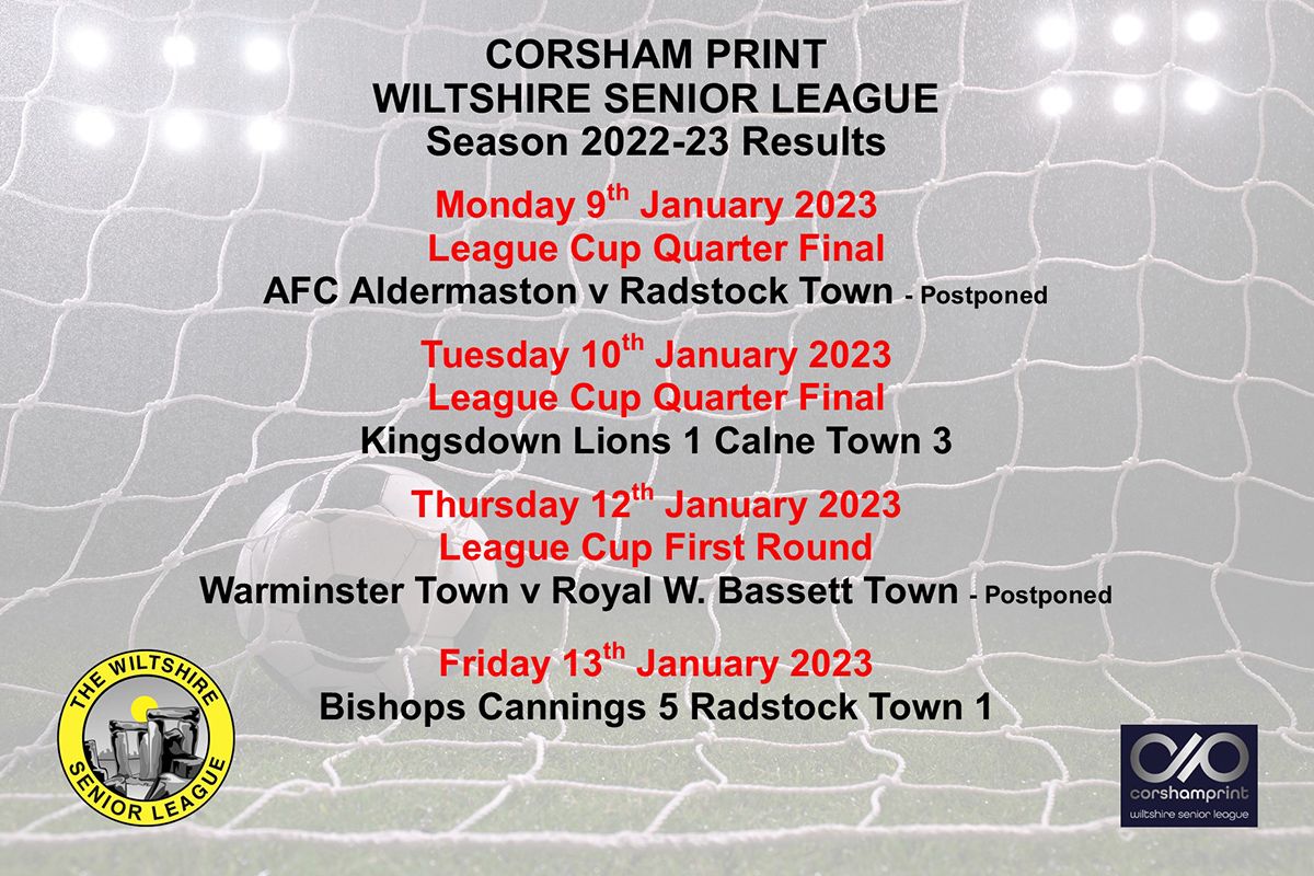 Unfortunately, the First Round tie between Warminster Town and Royal Wootton Bassett Town was postponed for the third time and it will need to be re-scheduled again. Similarly the quarter final tie between last season’s beaten finalists AFC Aldermaston and Radstock Town.