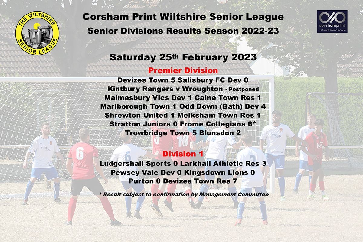 Frome Collegians was curtailed two minutes from time following the collapse of one of the Stratton Juniors players. Thanks to the quick response from both dugouts to the situation the player was put in the recovery position whilst an ambulance was called which thankfully was not long in arriving. We understand from speaking to Stratton manager Neil Lee last night that the player was allowed to leave hospital last night and all at the Wiltshire Senior League wish him a speedy recovery. Well done to both sides for reacting so quickly to such a serious situation. At the time that the game was brought to a premature end Frome Collegians were leading 6-0 thanks to goals from Jack Newman (2), Max Biddiscombe, Barry Sandquest, Dean Caslake and Lee Handford. In accordance with League rules a decision regarding whether the result will stand will be made at the upcoming Management Committee meeting, but with both teams having already confirmed they are happy with the score at the time of the abandonment to stand and entered the result in Full-Time, the current league table reflects the 6-0 score.