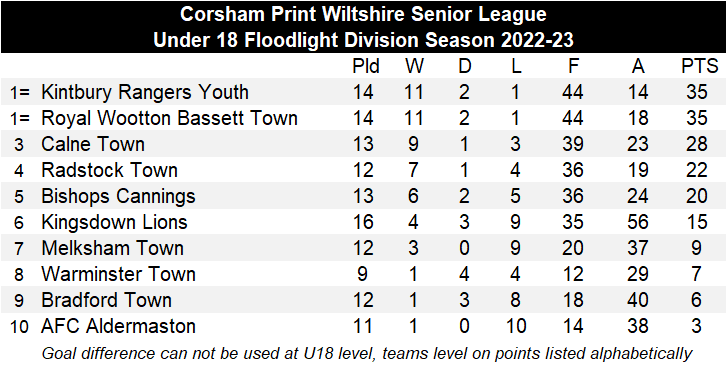 The game that did get played could have a big bearing on the title race as it involved Kintbury Rangers who were home to Radstock Town. At the start of the night Kintbury had the destiny of the title in their own hands, win all their games and they would be champions. However, Radstock themselves were in their best form of the season having won four straight games ahead of Monday’s visit. It looked like Kintbury would start their final five league games with a win to go top of the table as they led 2-1 with five minutes to go thanks to goals from Ashley Howes, with his eighth of the season, and Jon Canolli, Jack Farion having scored for Radstock. They were denied that victory though as Shaniel Mwaura got on the end of a cross at the far post to head Radstock level to extend Radstock’s unbeaten run and deny Kintbury the three points. The draw was still enough to enable Kintbury to move joint top of the table with Royal Wootton Bassett Town, with both sides still having four games to play. With FA rules not allowing goal difference to be applied in Under 18 competitions if the top two win all four of their remaining games, then a play-off would be needed. Royal Wootton Bassett Town still have Radstock Town to play twice in their remaining four fixtures so Radstock could well have a further big say in the title race before the end of the season.