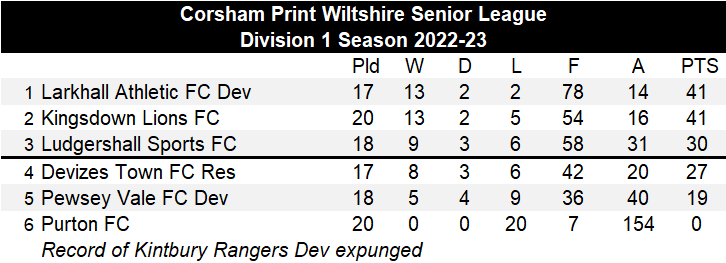 Purton. Their first visit to the Red House had been on the opening day of the season when they had won 10-0 and they secured another big win on their latest visit, improving their goal difference in the process as they ran out 7-0 winners. As has often been the case this season it was Luke Holden who led the way for Ludgershall in games against Purton adding five more to his season tally which now stands at 27, with 17 of those goals coming against Purton. The other scorers for Ludgershall were Ben Wyatt and Thomas-James Finn. This was Purton’s final game of the season and, despite another difficult season, credit to them for becoming the first team, along with Kingsdown, to complete all of their fixtures. Hopefully they will be able to regroup over the summer and come back stronger next season.