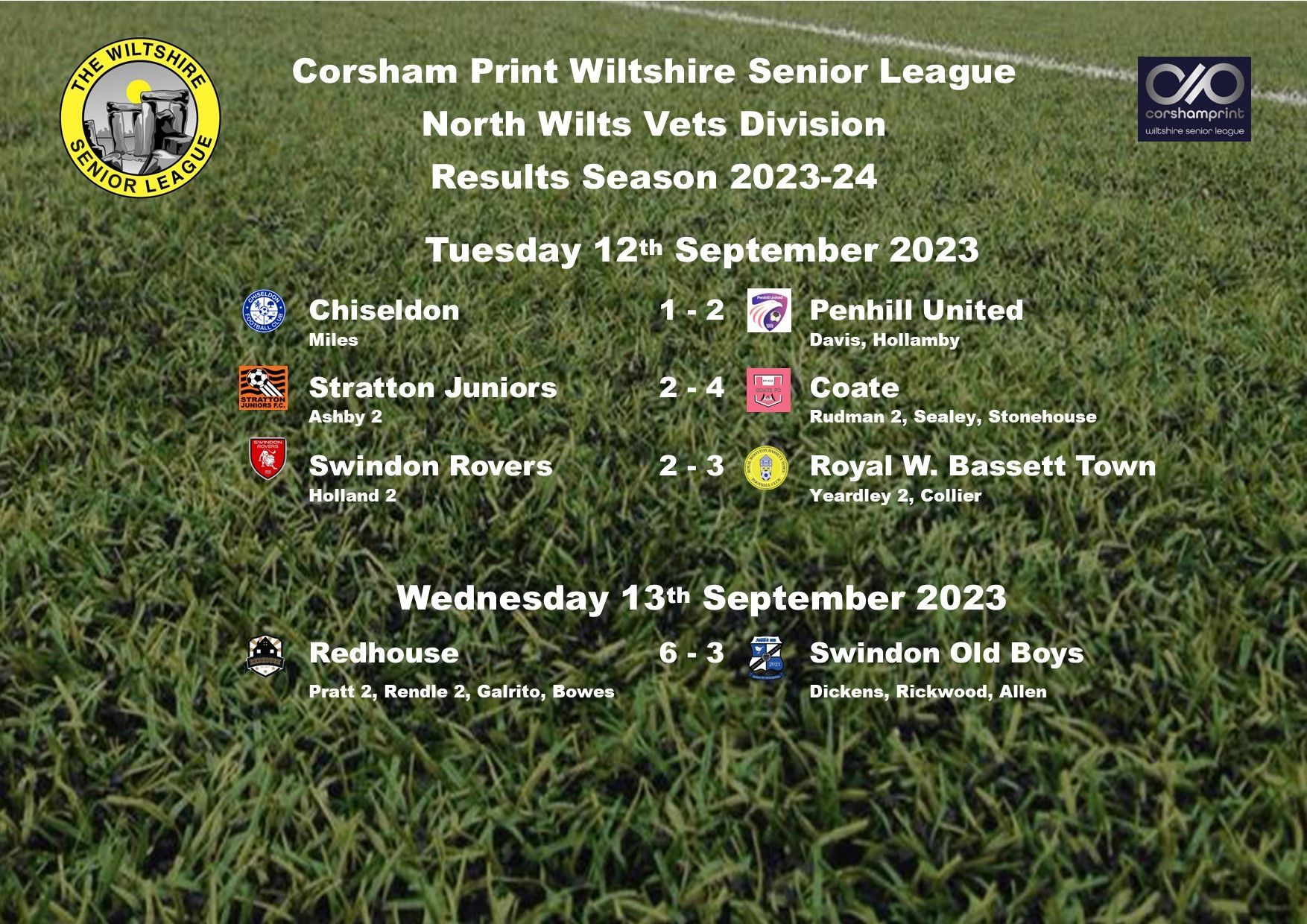 The final game of the week in the North Division was on Wednesday night at the Gerard Buxton Sports Ground and it produced the most goals of any game this week in the two Veterans’ divisions. Two goals for both David Pratt and Dave Rendle plus further strikes from Fred Galrito and Ashley Bowes saw Redhouse win 6-3 against Swindon Old Boys. On target for Swindon Old Boys were Barry Dickens, Wayne Rickwood and Chris Allen. The win for Redhouse saw them move top of the table a point ahead of Coate and Royal Wootton Bassett Town.
