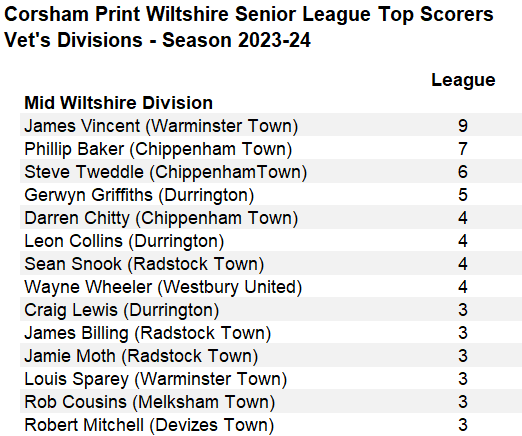 The big game at the top of the Mid Wiltshire Division saw league leaders Melksham Town looking to maintain their 100% winning record against another side who had started the season well, new side Durrington. It was to be the established Melksham side who came out on top as they recorded their sixth straight win thanks to goals from Tom Robinson, James Taylor and Rob Cousins in a 3-0 win that maintained their one point lead at the top of the table.