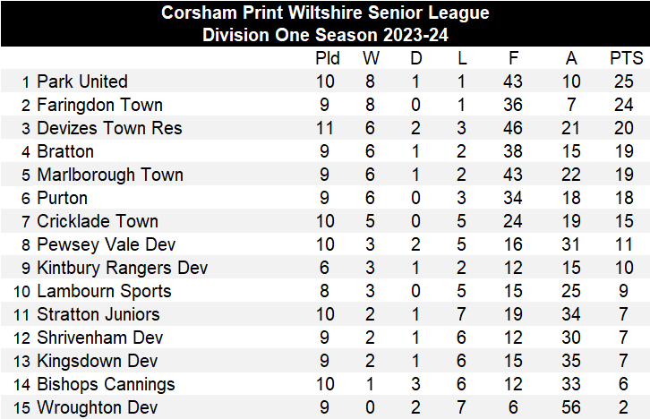 There was just one league game played this weekend and it took place in Division One and it saw Kintbury Rangers Development pick up their third win of the season, 2-1 away at Cricklade Town. Goals from Joseph Sheridan and Ali Thorp had given Kintbury a 2-0 half time lead but Cricklade pulled one back through Josh Riggs after the break, but they were unable to find an equaliser. The win for Kintbury saw them move up a place in the table.
