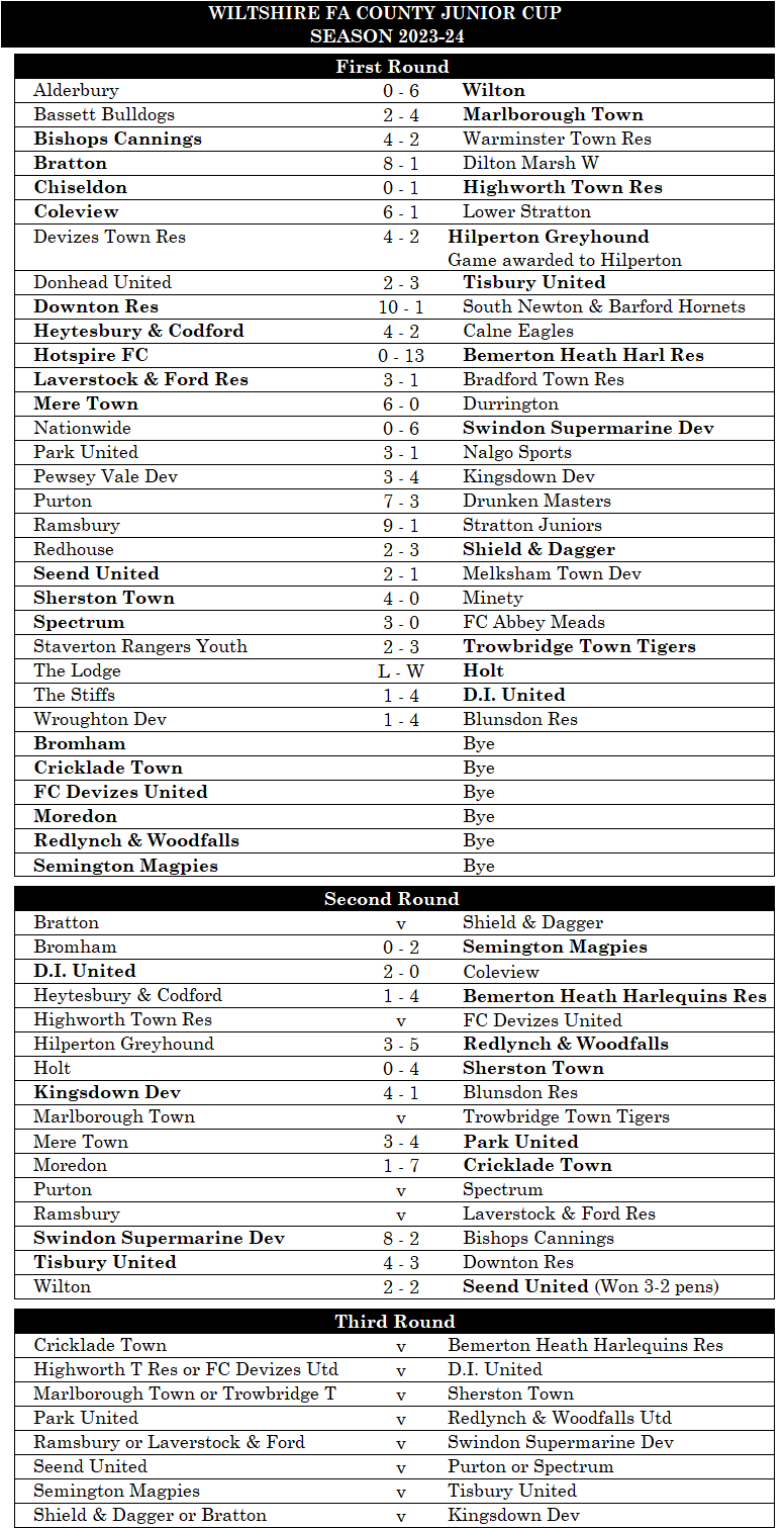 Once again the wet weather played havoc with the fixtures in the Corsham Print Wiltshire Senior League and Wiltshire Junior Cup with two of the Junior Cup fixtures postponed for the third consecutive week, with both Marlborough Town and Bratton set to try again next week with getting their Second Round games played. One game in the Junior Cup did get played and it saw
