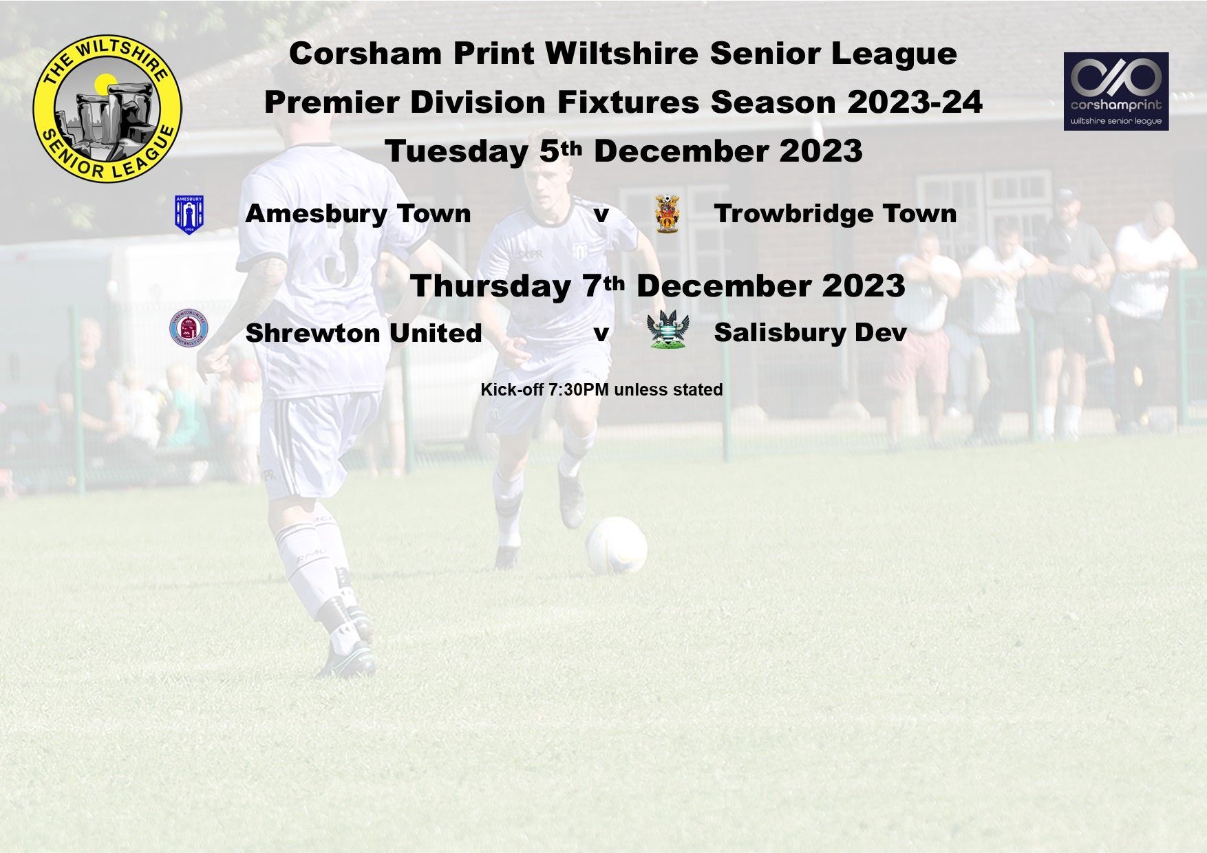 On a bitterly cold afternoon with lingering fog for most of the afternoon and with multiple games postponed in other local leagues, the pleasant surprise was that eight games involving sides from the Corsham Print Wiltshire Senior League went ahead on Saturday.