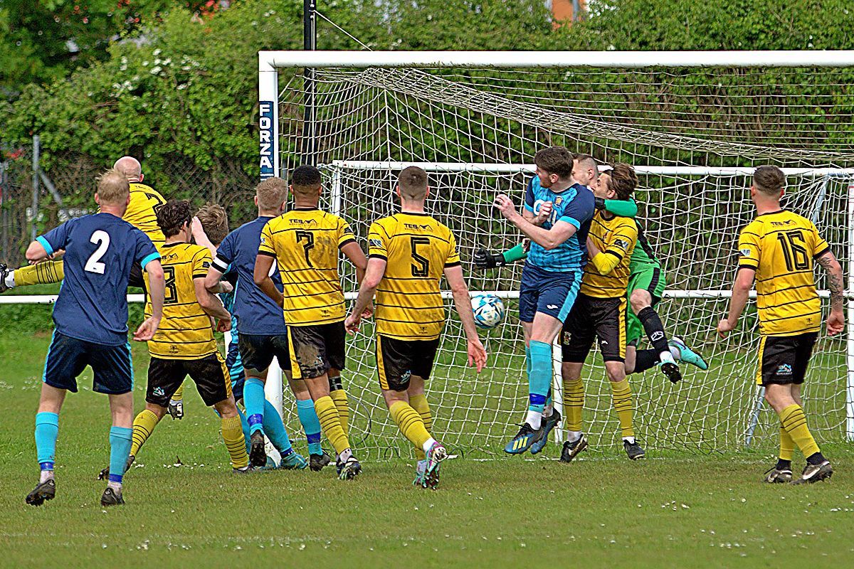 With the league title and the bottom positions already decided in the Premier Division after last Saturday’s round of fixtures there were just five games left to play with Kingsdown who involved in three of their games. Credit to Adie Wilkinson for fielding a competitive side in the two games played on Bank Holiday Monday and on Wednesday night. Kingsdown’s fixture issues were not really of their own making, whilst they have issues with their pitch the three games to end their season were all caused by their opponents calling off.