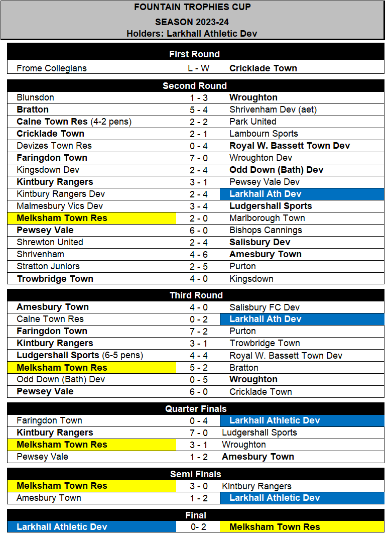 Melksham Town Res - Olly Clarke, Jaiden Pearce, Luke Curtis, Nick CHandler, Rhys Lock, Aron Byfield, Tom Dowell, Sam Dowell, Josh Bellamy, Josh Bright, Jamie Ellis. Subs: Liam Curtis, Elliot Haffenden, Jake Dodge, Sam Whitehead, Alex Nunn.