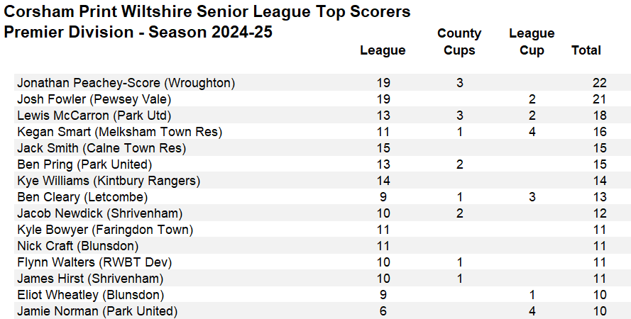 On a final note, all at the Corsham Print Wiltshire Senior League wish all our clubs, match officials, players registered with the league, sponsors, media partners and supporters a happy and prosperous New Year. All 33 clubs in the Premier Division and Division One are scheduled to be in action in either league or cup fixtures on the first Saturday in January.