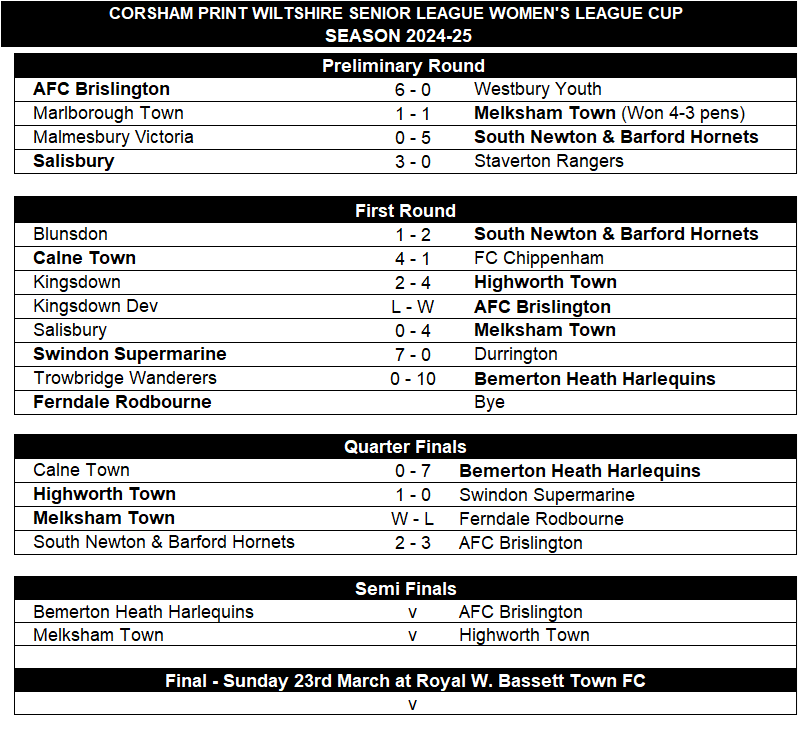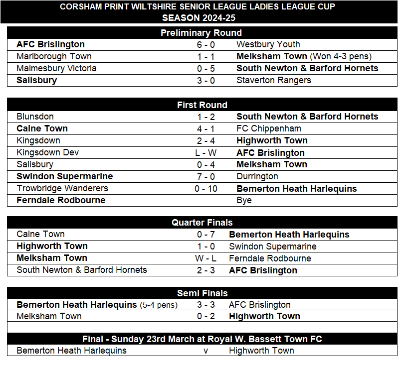 The League Directors, Officers and Management Committee would like to congratulate both Bemerton Heath Harlequins and Highworth Town on reaching today’s final. It is fitting that the top two teams in the Ladies Premier Division have made it through to today’s cup final, two proper football clubs who are extremely well organised and play all their games. Both have been the dominant sides from the off this season. Bemerton Heath Harlequins have won every one of their league games whilst Highworth’s only defeats have come at the hands of Bemerton and AFC Brislington.