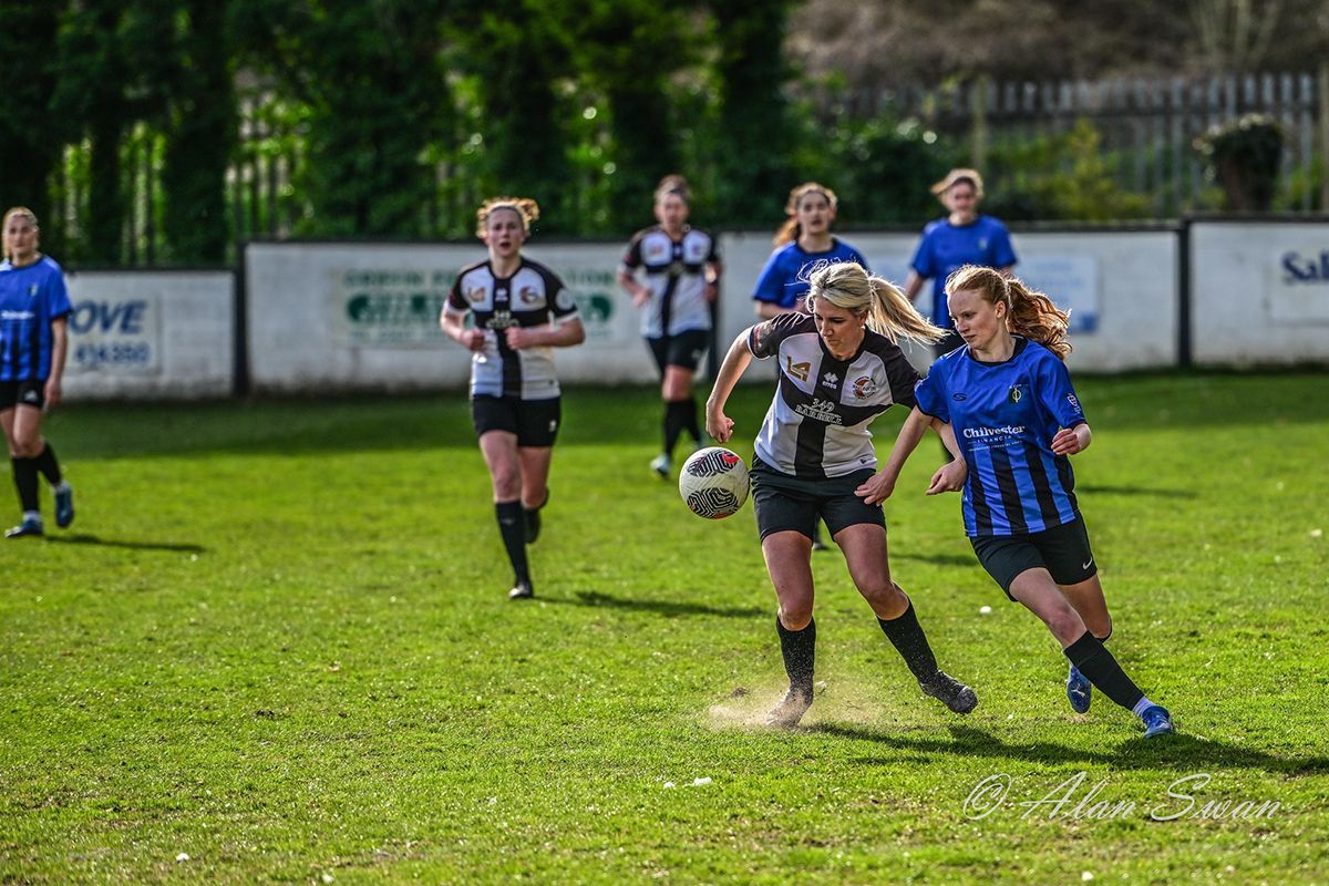 There was a rare midweek game in the Premier Division this Tuesday night with the big A361 derby between Swindon Supermarine and Highworth Town, with Highworth looking to bounce back from the disappointment of Sunday's cup defeat. An entertaining first half saw Swindon Supermarine twice take the lead with goals from Beth Turner and Millie Swift only to be pegged back on both occasion by goals from Beth Harris and Leah Holder for Highworth. Harris scored a second after the break putting Highworth ahead for the first time in the game with what proved to be the winner. The win for Highworth saw them close the gap to Bemerton to just three points, although Highworth have now played one more game than Bemerton.