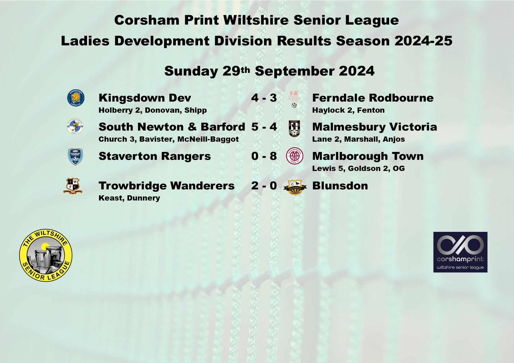 Biggest winners of the day were Salisbury who bounced back from their opening day defeat at the hands of Trowbridge Wanderers by hitting six unanswered goals against Kingsdown Development. Substitute Elisha Taylor registered a hat-trick, Nicole Kirkman scored twice with the other goal being scored by Anglea Collins.