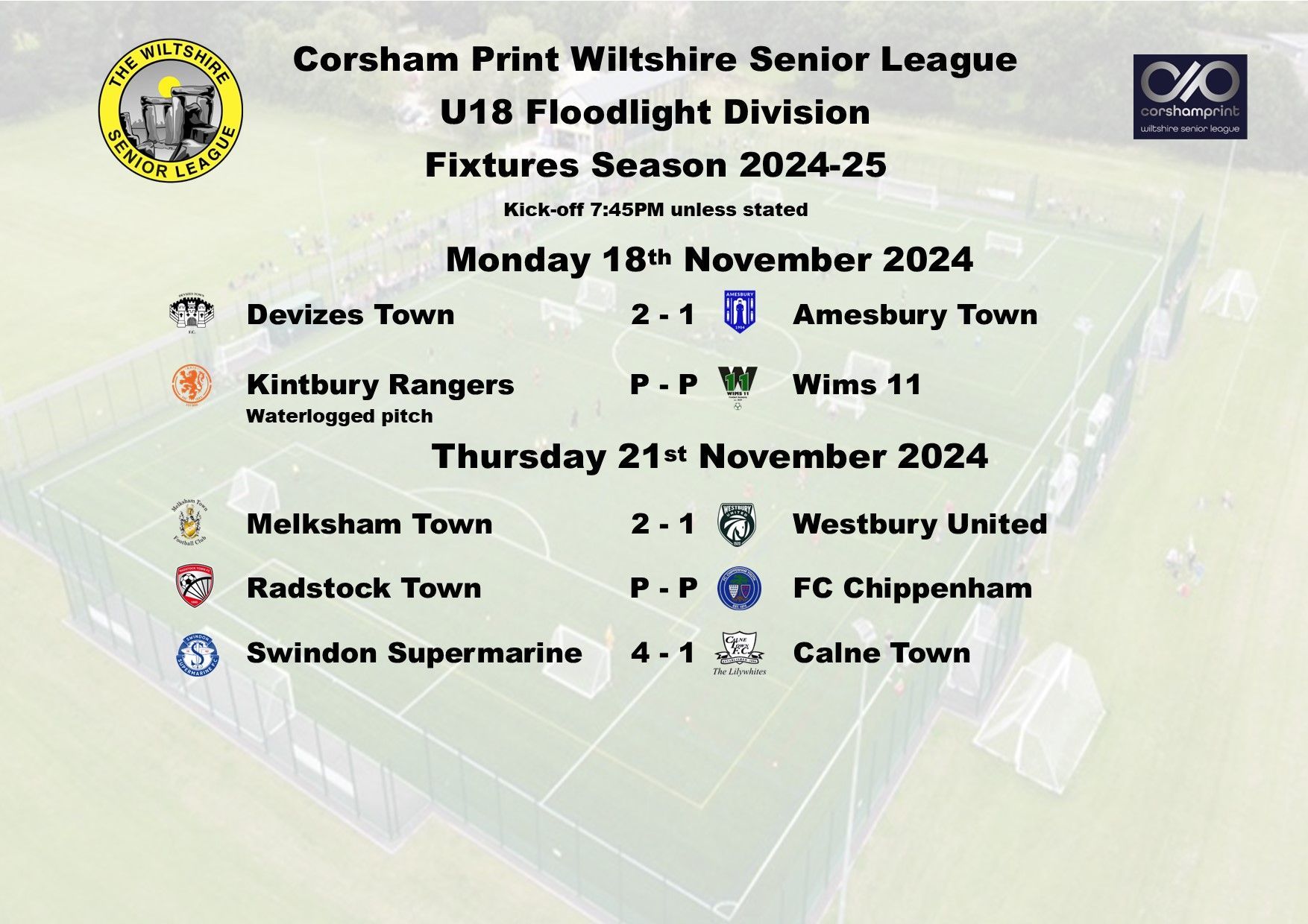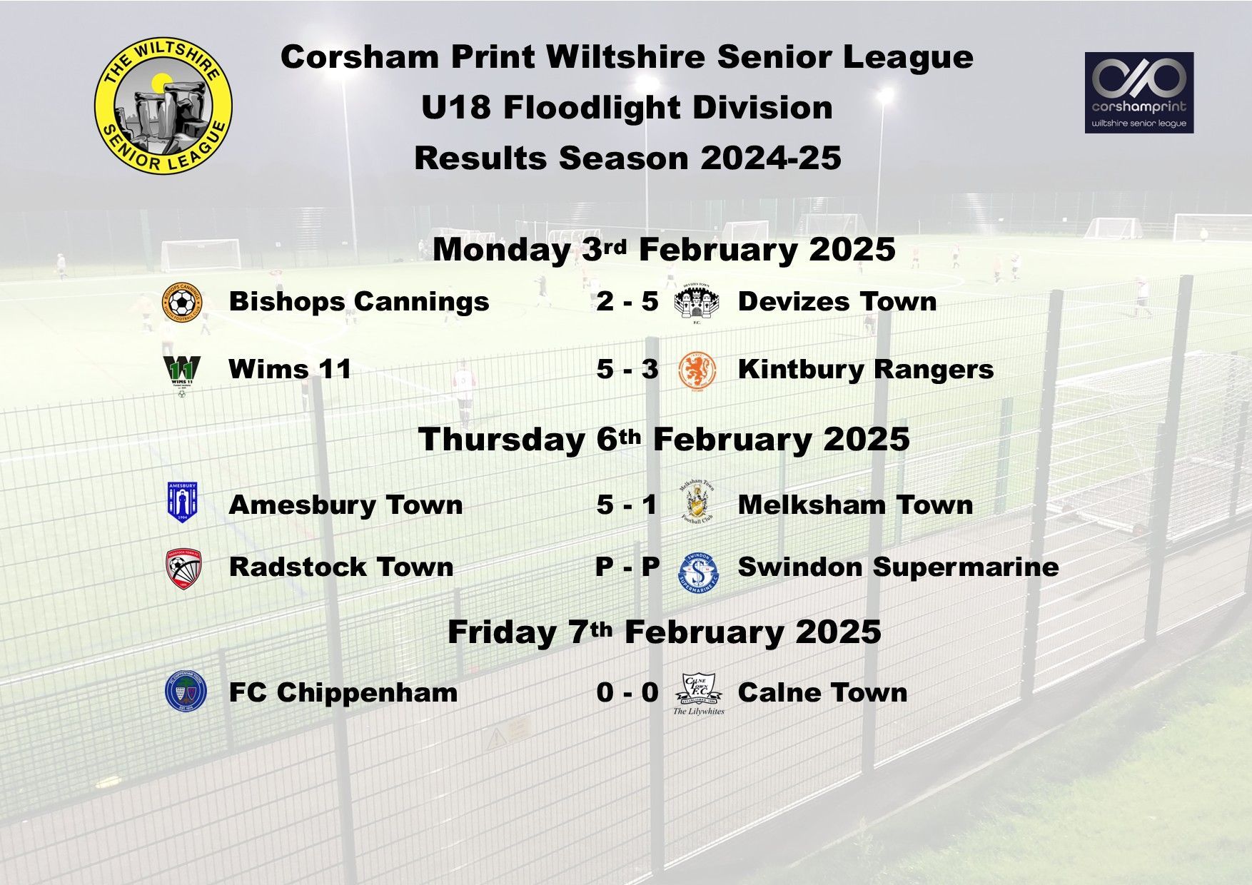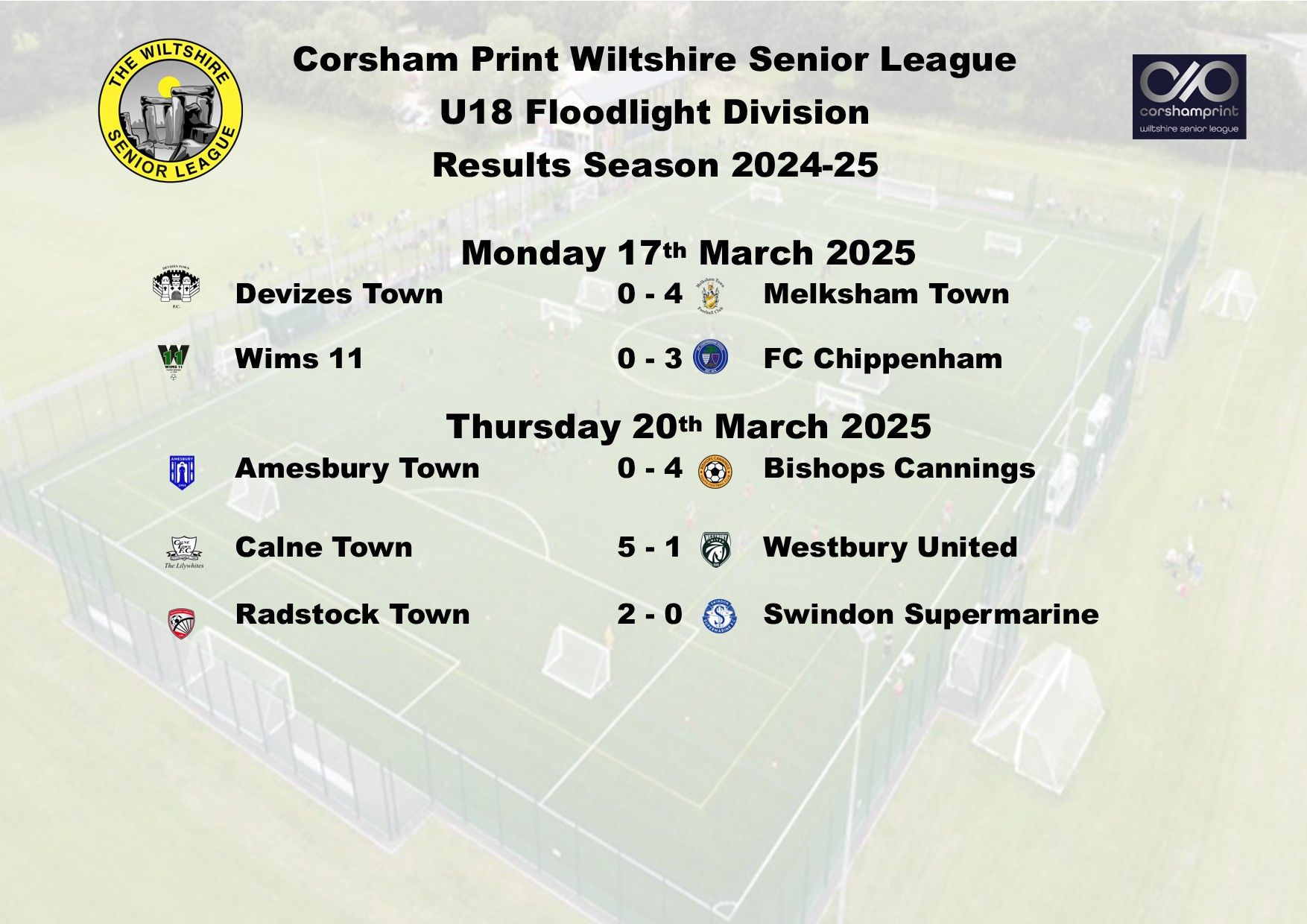It was another good week in the Under 18 Floodlight Division of the Corsham Print Wiltshire Senior League as all five games were played in the Division.