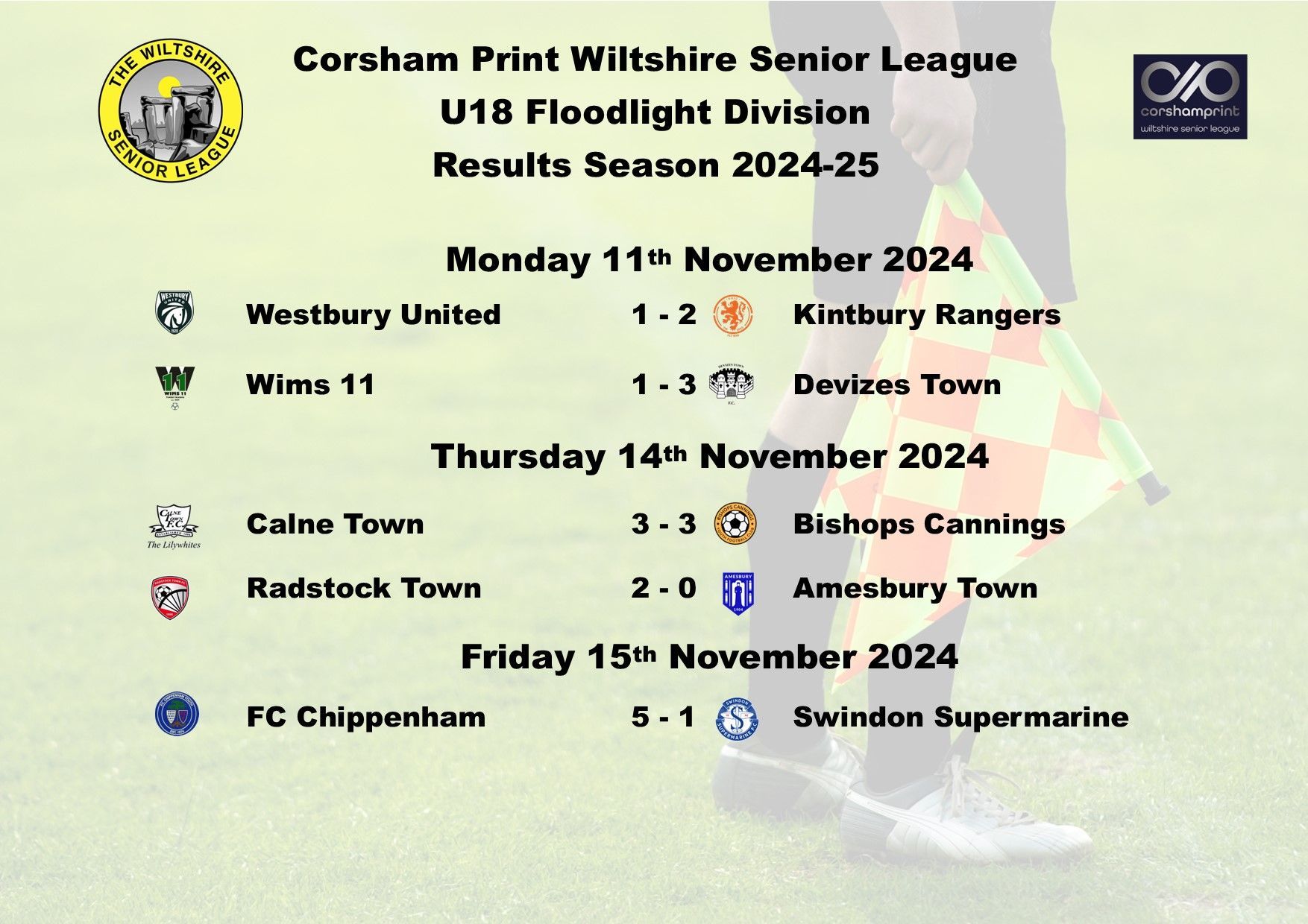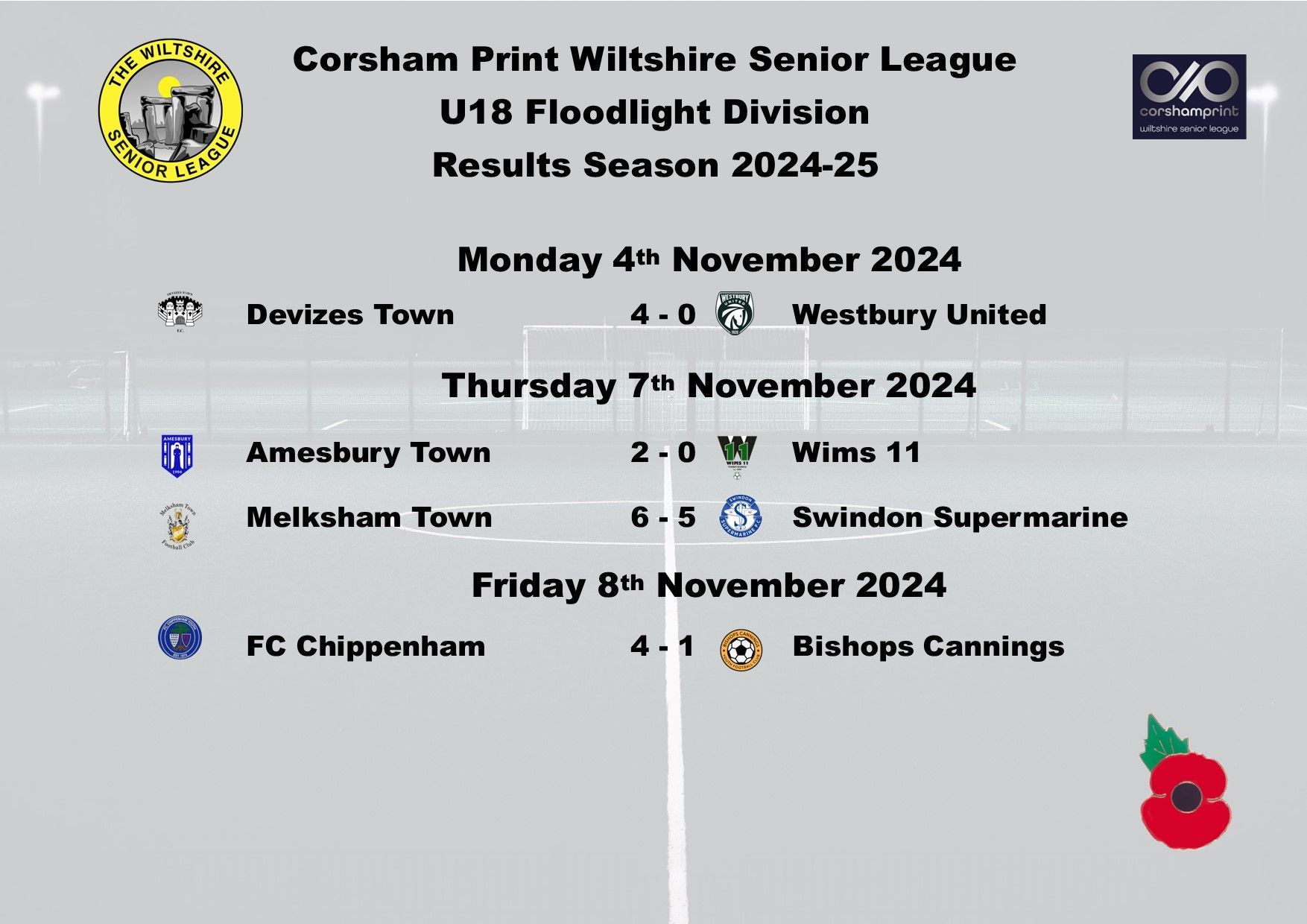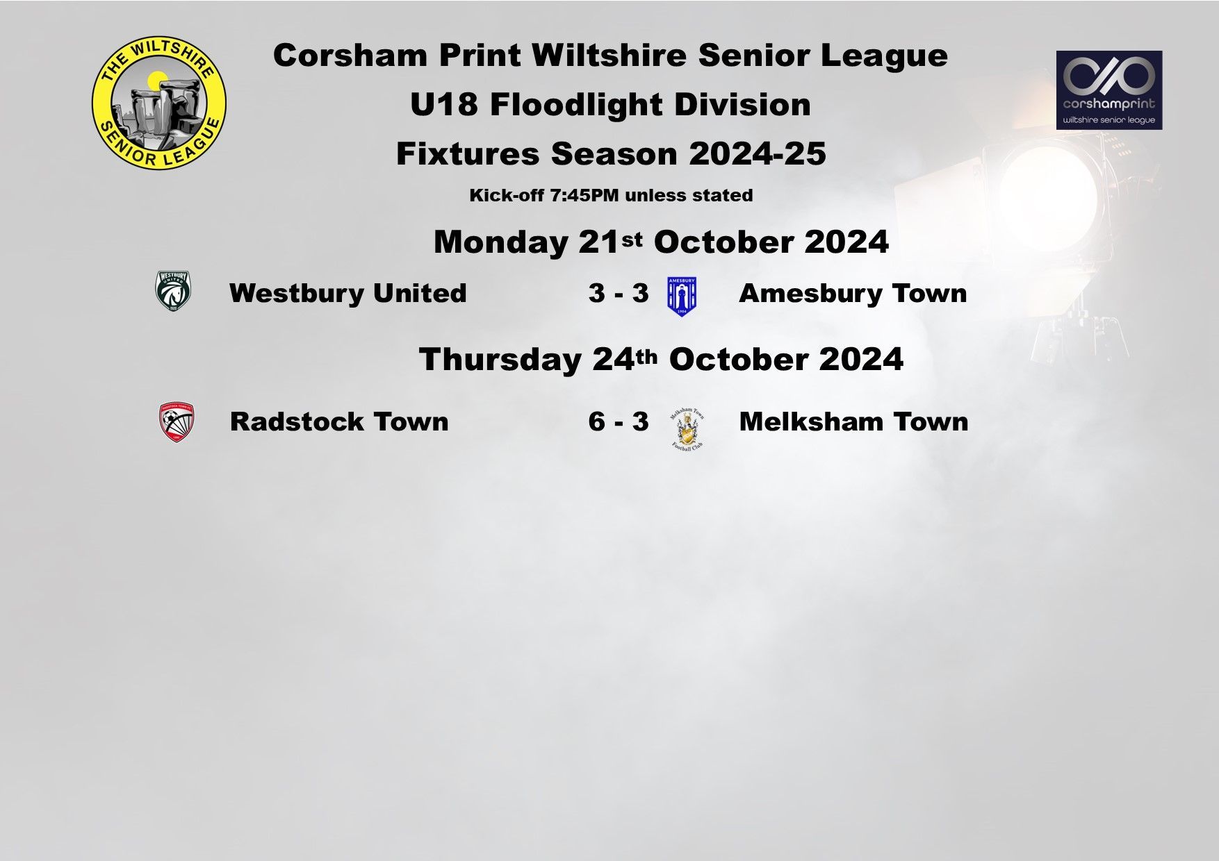 It was another good week in the Under 18 Floodlight Division of the Corsham Print Wiltshire Senior League as all five games were played in the Division.