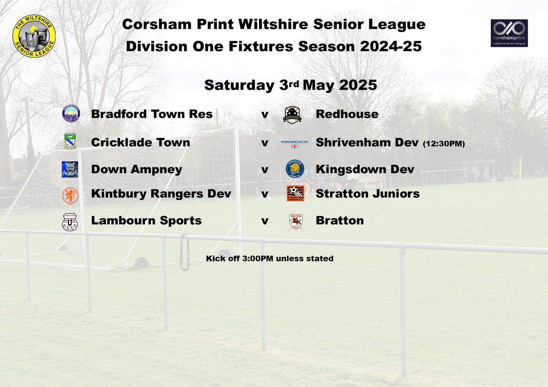 Redhouse with the game kicking off later than the rest of the division on the 3G pitch at Moredon. Cricklade got themselves off to a flying start, Alfie Presley putting them ahead with just four minutes on the clock and then scoring three more before half time to put his side 4-0 up at the break. Redhouse pulled one back after the restart, but it was to be only a brief rally as two goals from Callum Parsons put Cricklade Town 6-1 up, that is now 19 for the season for Parsons. Two further goals from Presley in the last ten minutes to complete a double hat-trick for his side rounded off a good afternoon for Mani Roper’s Cricklade side as they improved their goal difference advantage even further courtesy of an 8-1 win. Cricklade Town are back in action on Tuesday night when they make the short journey into Swindon to play Stratton Juniors for what is their penultimate game of the season, completing their season on Saturday at home to Shrivenham Dev. With their far superior goal difference Cricklade will effectively secure the title with a win over Stratton Juniors on Tuesday but if Devizes also win on Tuesday mathematical certainty would only come on Saturday, but the title would effectively be heading Cricklade’s way if they beat Stratton.