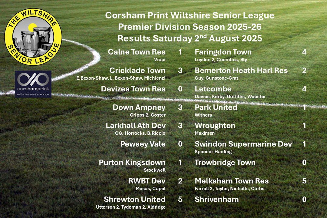 There are eight games scheduled in midweek. On Tuesday night Cricklade Town host near neighbours Purton Kingsdown, Letcombe entertain Shrivenham, whilst Royal Wootton Bassett Town Development make the short journey to the Weir Field to play Wroughton, as both teams look to bounce back from opening day defeats. There are two more games on Tuesday night with Calne Town Reserves home to Larkhall Athletic Development and Faringdon Town hosting Pewsey Vale.