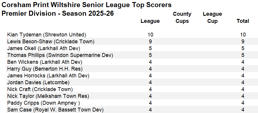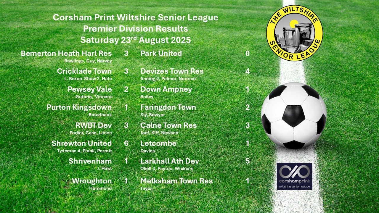 The game between Stratton and Great Western unfortunately was abandoned following a serious injury to the Stratton keeper Jayden Nash. We understand that, following a hospital visit, the injury is not as bad as first feared and all at the Corsham Print Wiltshire Senior League wish him a speedy recovery.