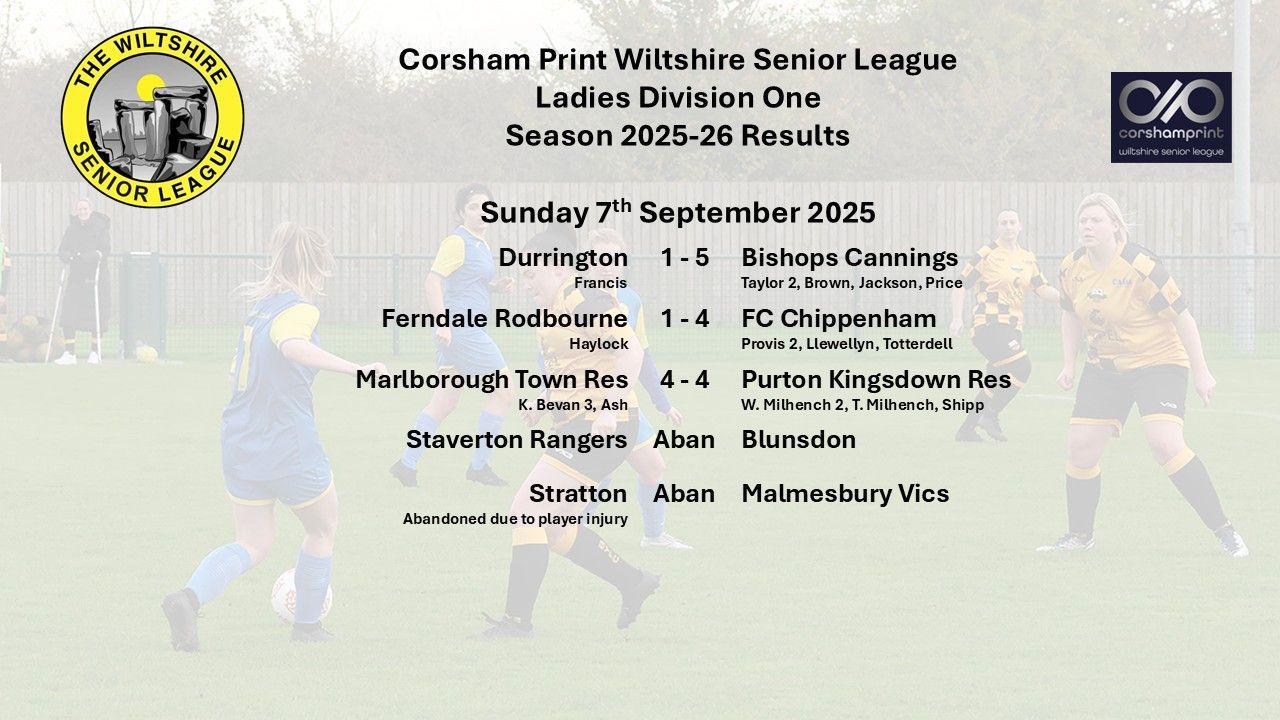 Week two in the Ladies divisions of the Corsham Print Wiltshire Senior League proved to be a problematical one with three of the scheduled ten games not going the full duration, one in the Premier Division was postponed due to the weather and two in Division One ended up being abandoned.