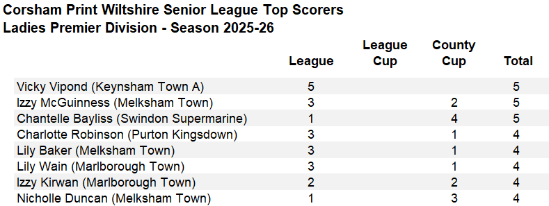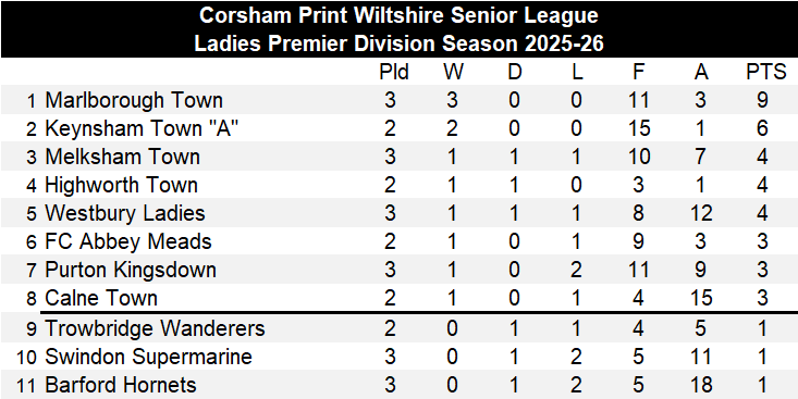 There were no league games last weekend in the two ladies’ divisions of the Corsham Print Wiltshire Senior League with it being the First Round of the Wiltshire FA ‘s County Cup. Of the ten scheduled ties there were seven games where Division One sides were up against Premier Division.