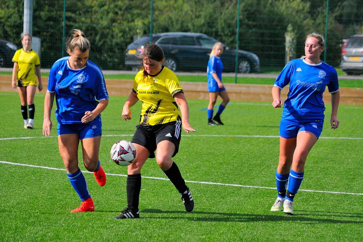 The other four inter-divisional ties were very much went the way of the Premier Division sides. Biggest winners of the day were Melksham Town who put 12 unanswered goals past an FC Chippenham side who had won both of their opening league games. Nicholle Duncan led the way scoring a hat-trick, Rebecca Kench and Izzy McGuiness both scored twice and there were further goals from Lilly Baker, Andrea Chludilova, Tilly McVey, India Mulliss and Libby Reeves..