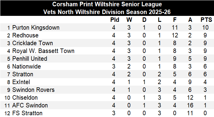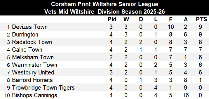 It was a busy week in the two Veterans’ divisions of the Corsham Print Wiltshire Senior League with a full schedule of eleven games, in the end, being played.