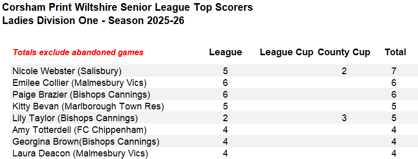 Nicole Webster is the division’s leading scorer on seven goals after a productive Sunday in Swindon, scoring a hat-trick in Salisbury's 4-0 win over Stratton. Webster opened the scoring with a fine solo effort before scoring from a corner, getting on the end of an Angela Collins in-swinger at the back post. Salisbury’s third of the afternoon also came from a corner, Hannah Owen’s delivery into the box causing problems in the Stratton defence, with the ball finding its way into the net via a Stratton defender. The scoring on the afternoon was rounded off by a hat-trick goal from Webster with that seventh goal of the season.