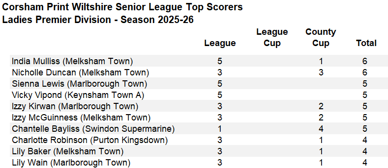 Melksham Town moved up to second place with a 10-0 victory over Barford Hornets with India Mulliss another player to score a hat-trick on the day, both Ella King and Nicholle Duncan scored twice, with goals from Lily Somers, Andrea Chludilova and an own goal completing the scoring.