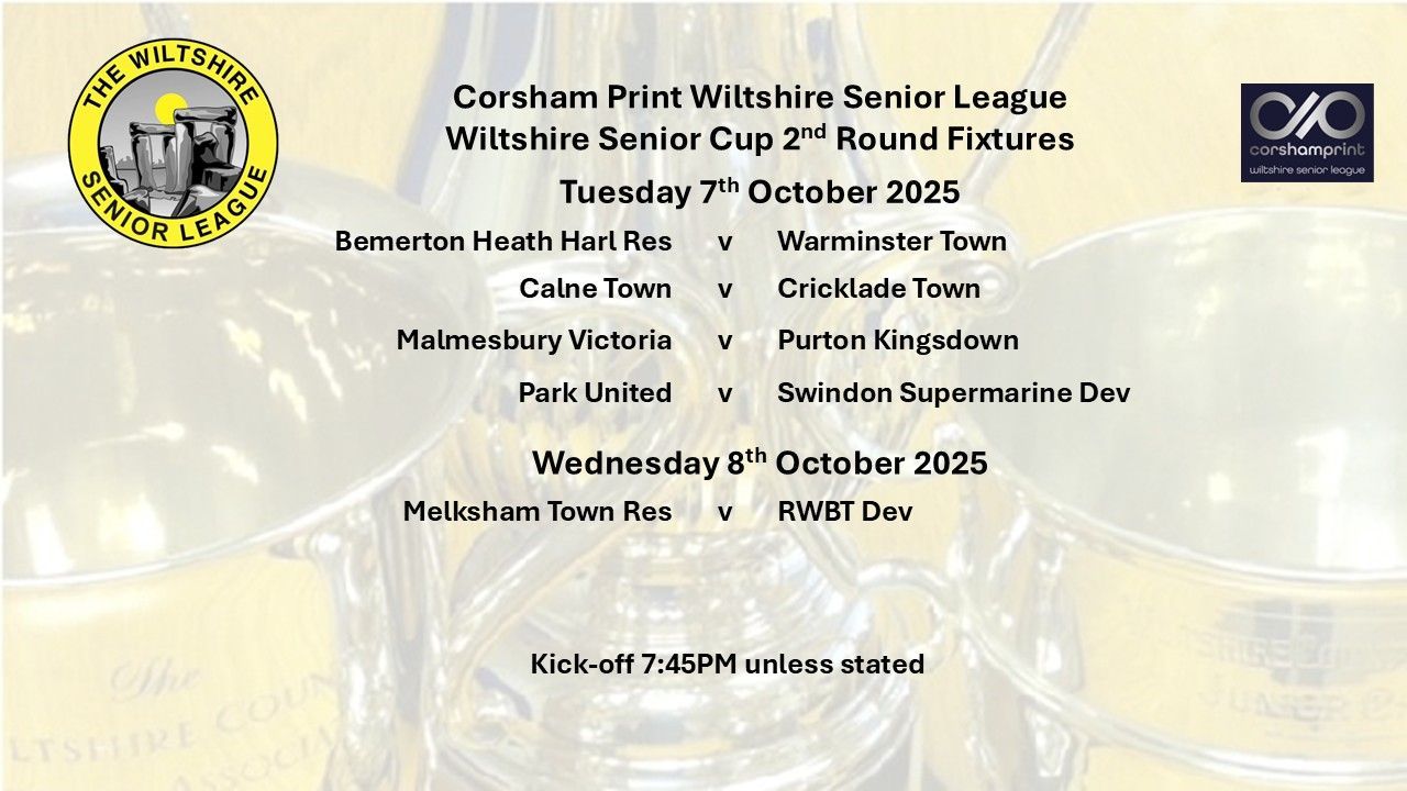 The final tie involving a side from the Corsham Print Wiltshire Senior League was the game between Great Western and Mere Town who play in the Dorset Senior League and who were runners-up in their league last season. In a close encounter the South Wiltshire based side edged it by the odd goal in five, Joe Harrison-Butcher and Stephen Winslow with the two goals for Great Western. The full results in this season's cup competition so far are shown below: