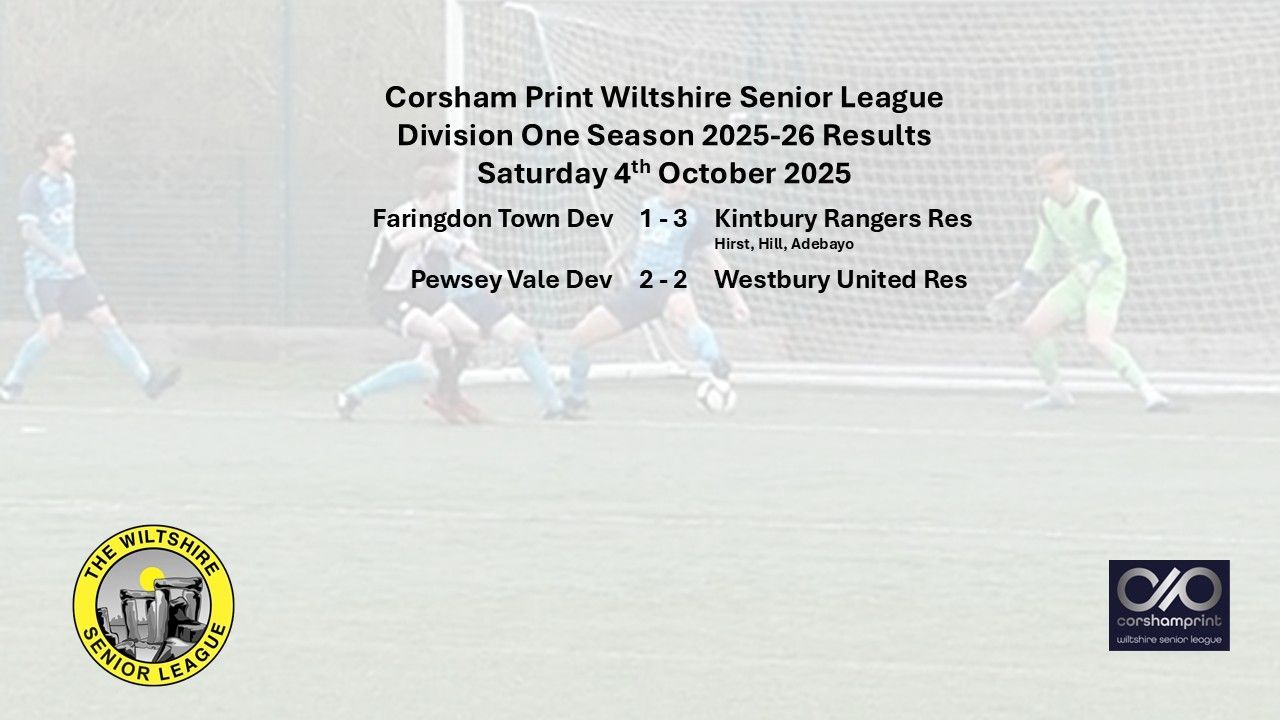 The other game played saw Westbury United Reserves avoid defeat for the first time this season when they drew 2-2 away at Pewsey Vale Reserves. Despite the result Westbury remain without any points due to the points deductions incurred for failing to fulfil fixtures, including the original scheduled staging of the game against Pewsey. The two Pewsey goals were scored by Luke Driscoll and Auden Pollock.