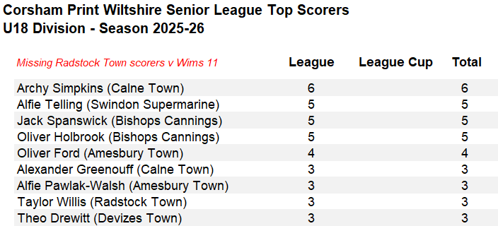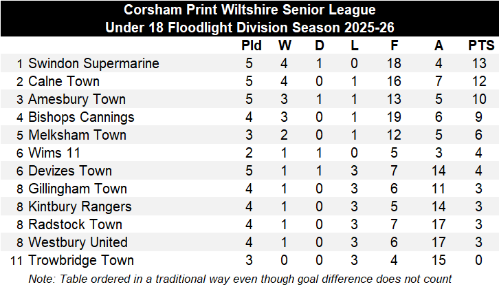 For the first time since the first round of fixtures in Season 2025-26 there was a full schedule of six games played in the U18 Floodlight Division of the Corsham Print Wiltshire Senior League last week.